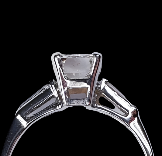 1.16ct emerald cut diamond and baguette diamond engagement ring sku 6065