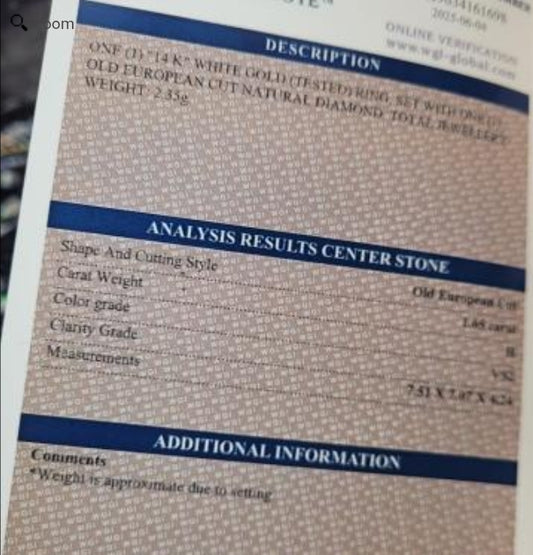 1.03ct Old European Cut Diamond Engagement Ring SKU: 2784