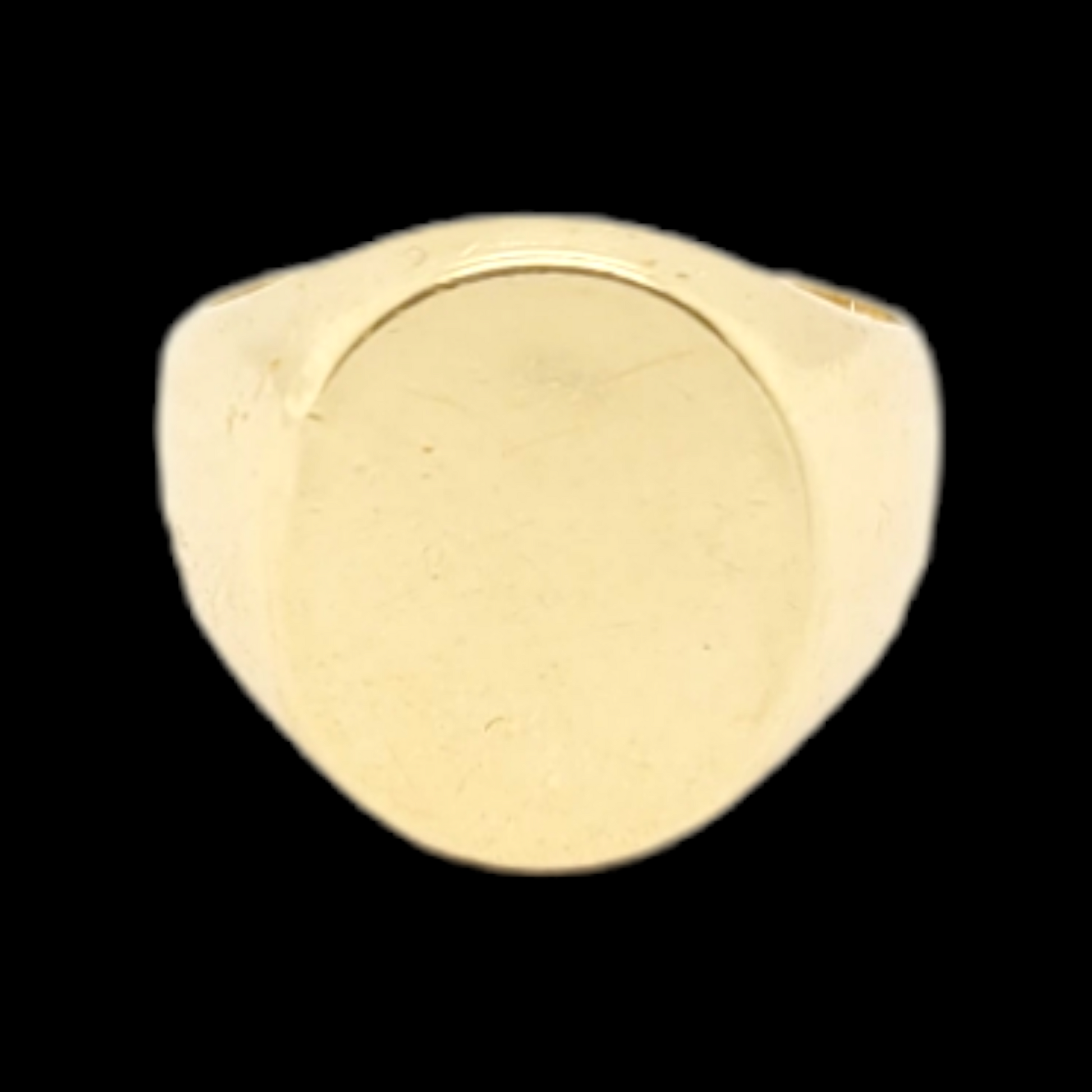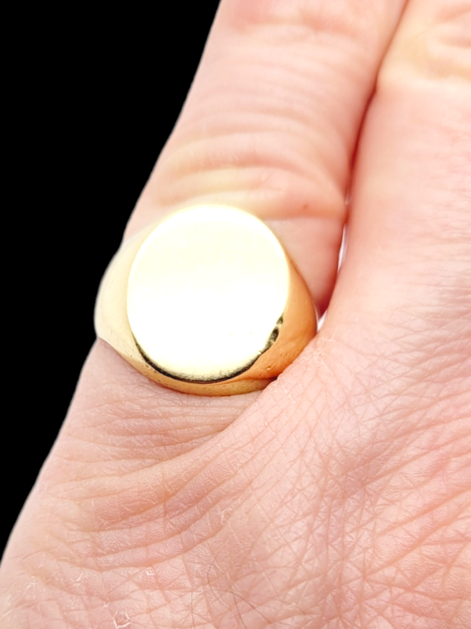 Heavy oval 18ct gold signet ring ready to be engraved. 16mm x 14mm. Currently finger size N