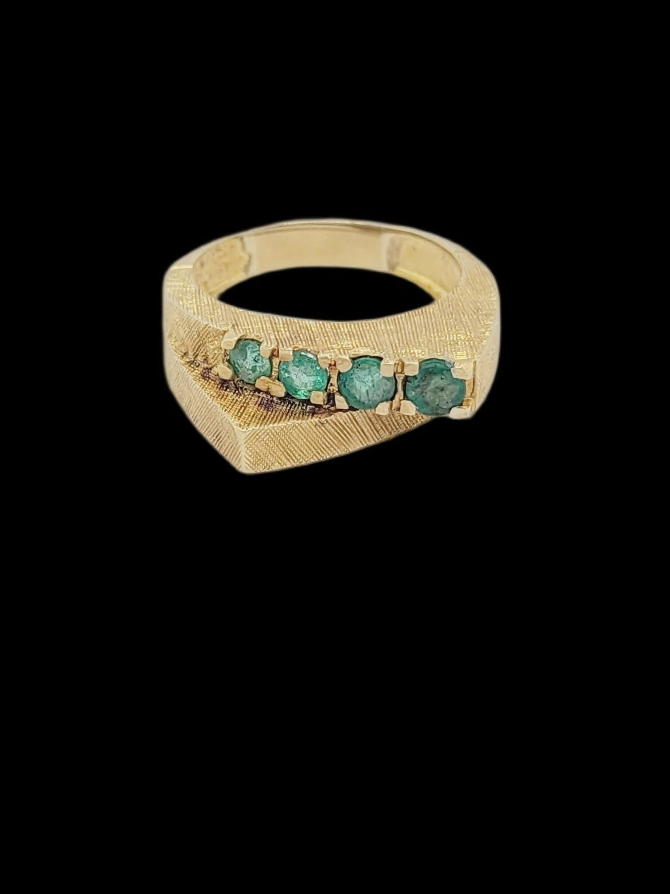 1970s, cool emerald and textured 18ct yellow gold ring sku 8511