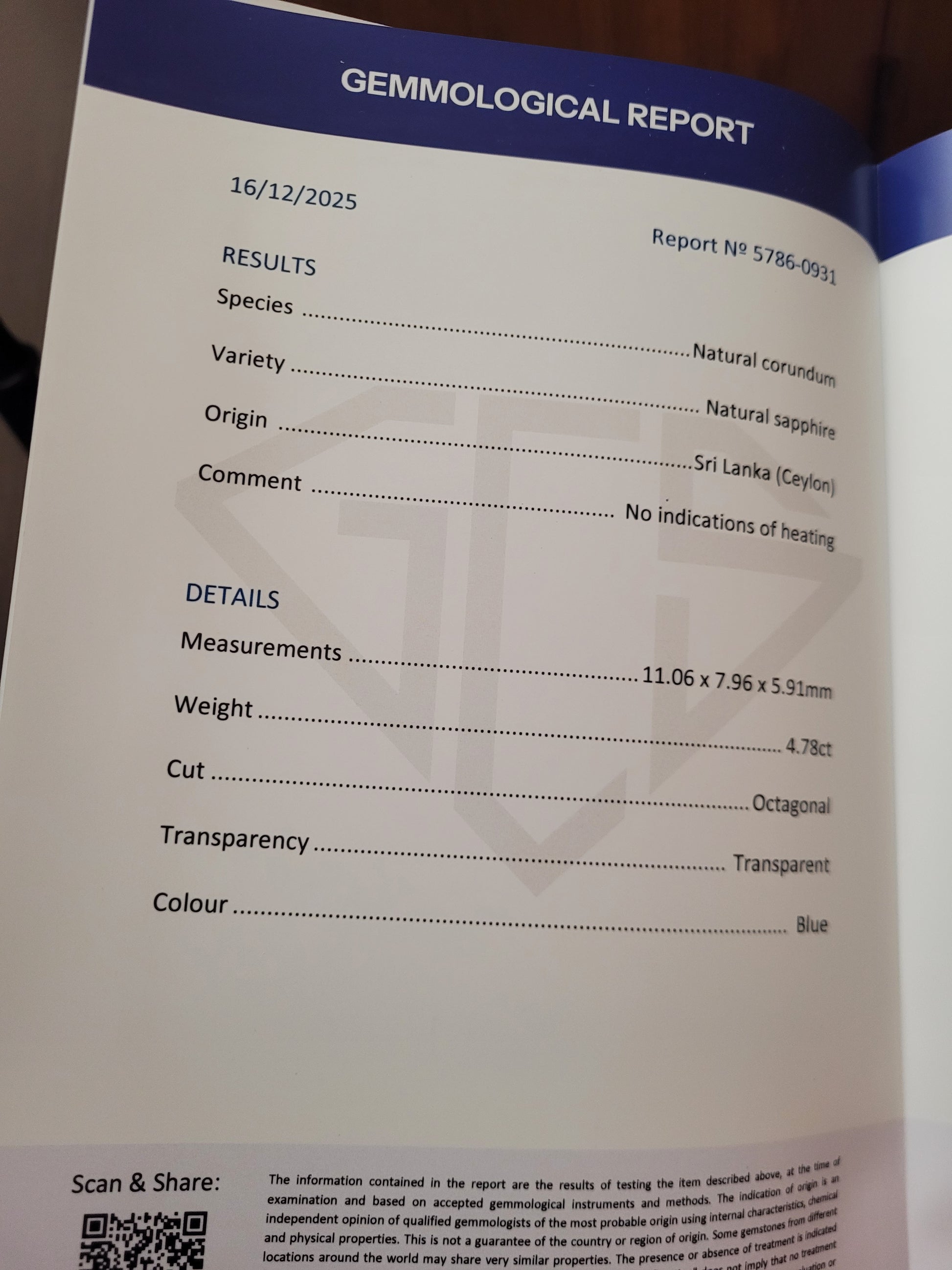4.78ct natural Ceylon emerald cut sapphire engagement ring sku 8752