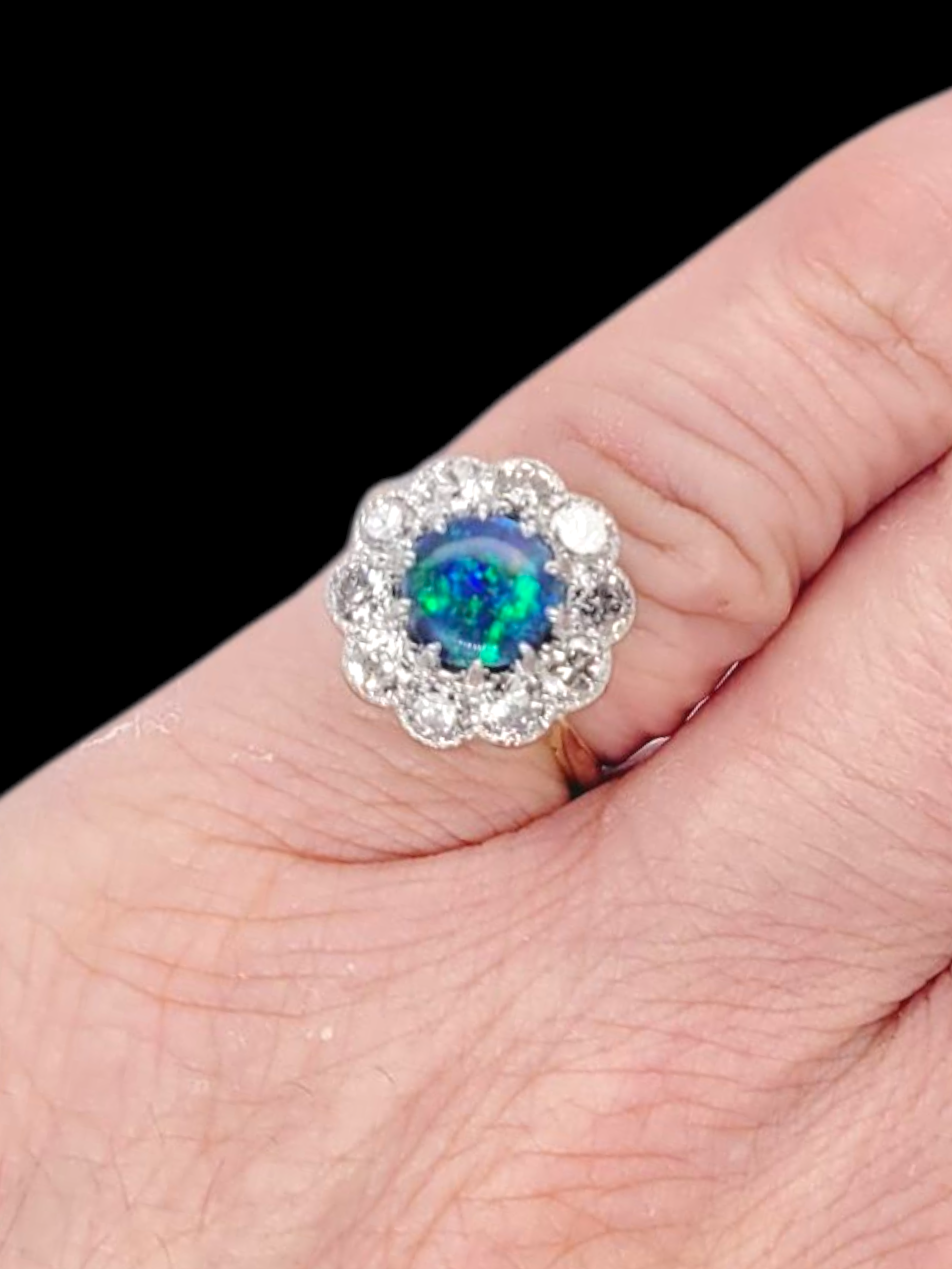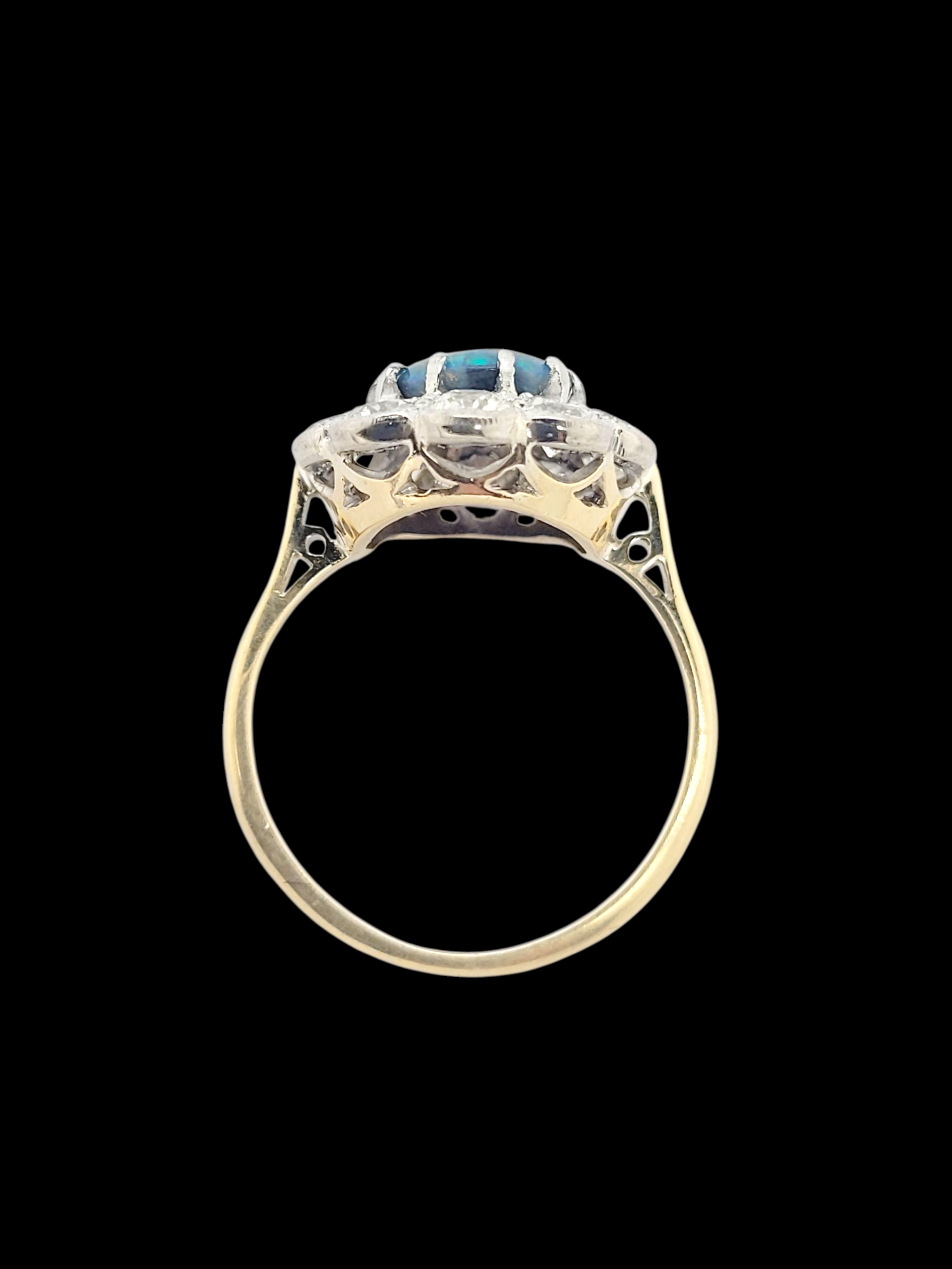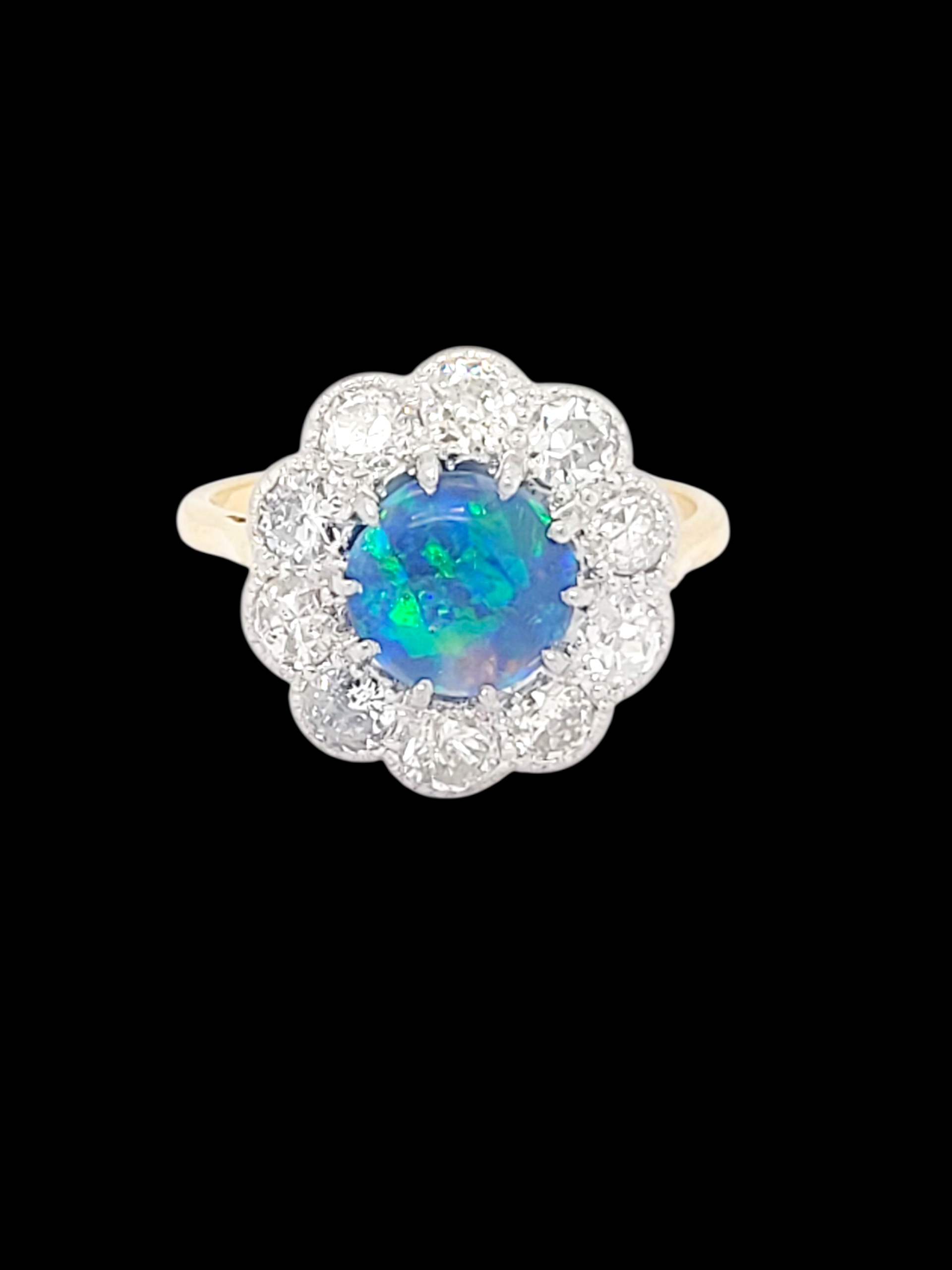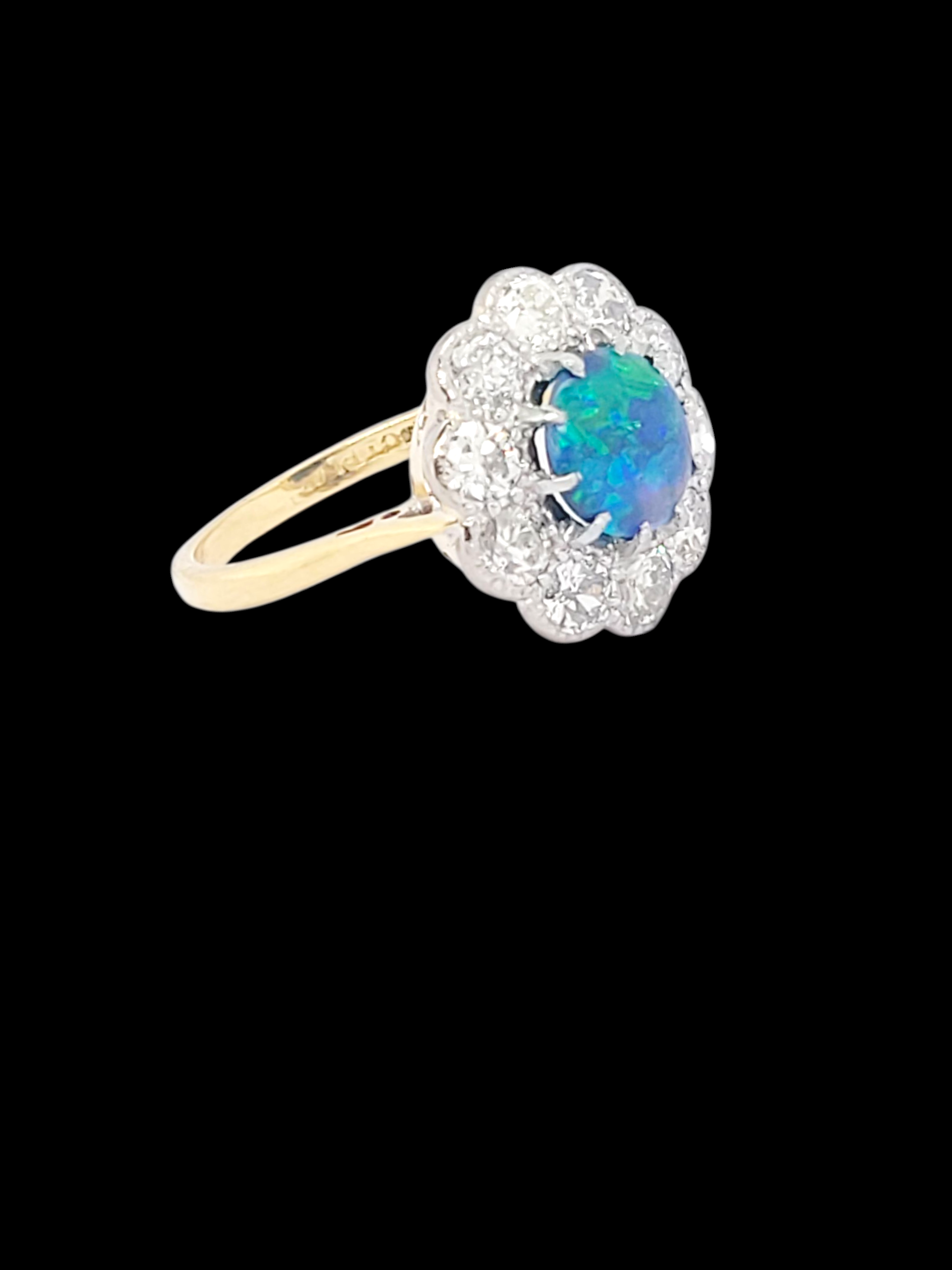 Antique black opal and old cut diamond cluster ring SKU: 8262