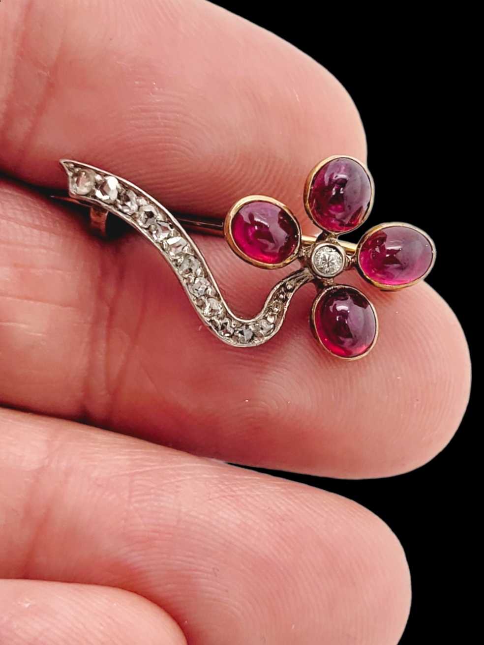 1.20ct of cabochon rubies with 0.20cts of old cut and rose cut diamonds set in silver and gold.