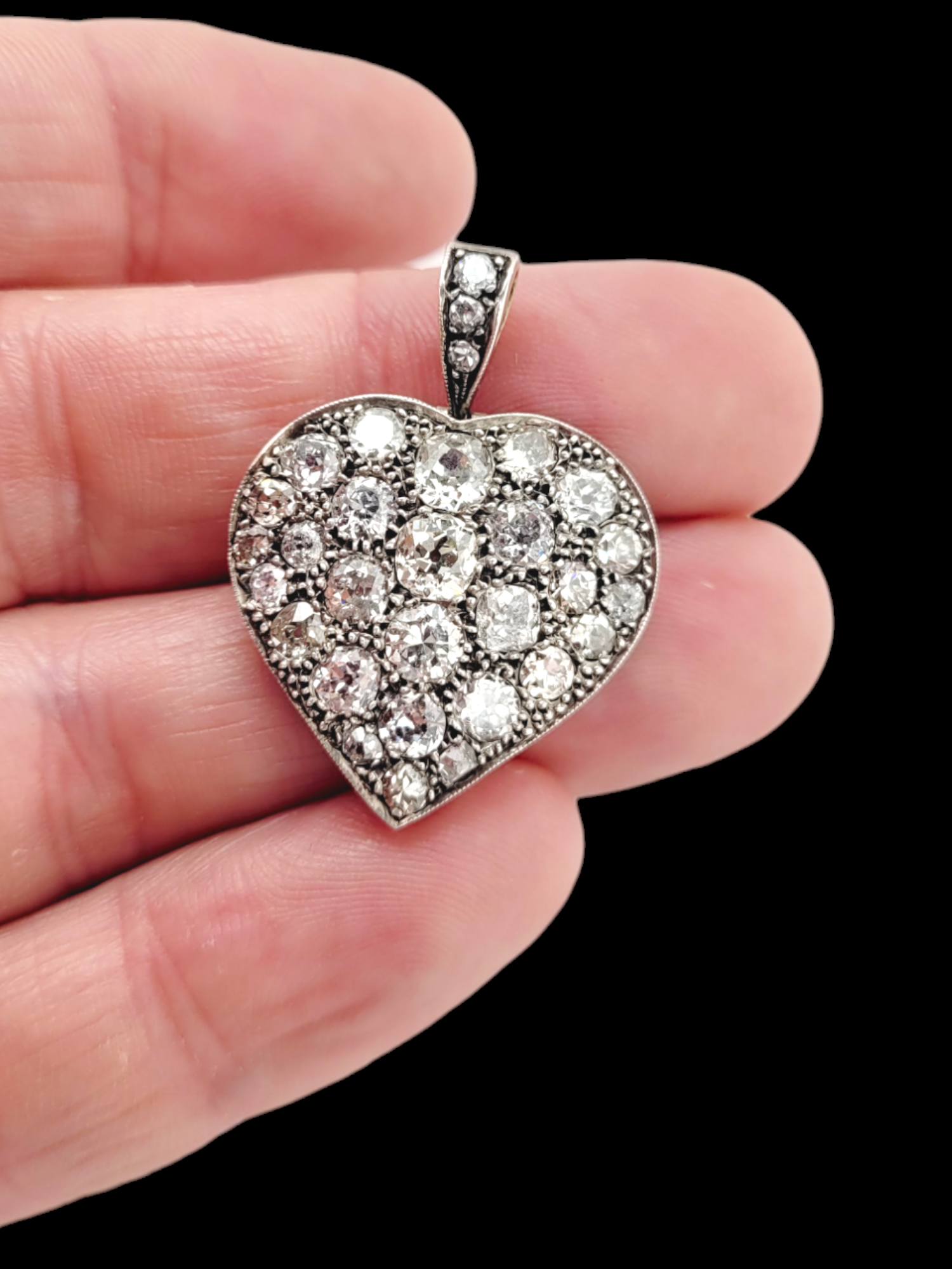 Antique chunky old mine cut diamond heart pendant SKU: 7636