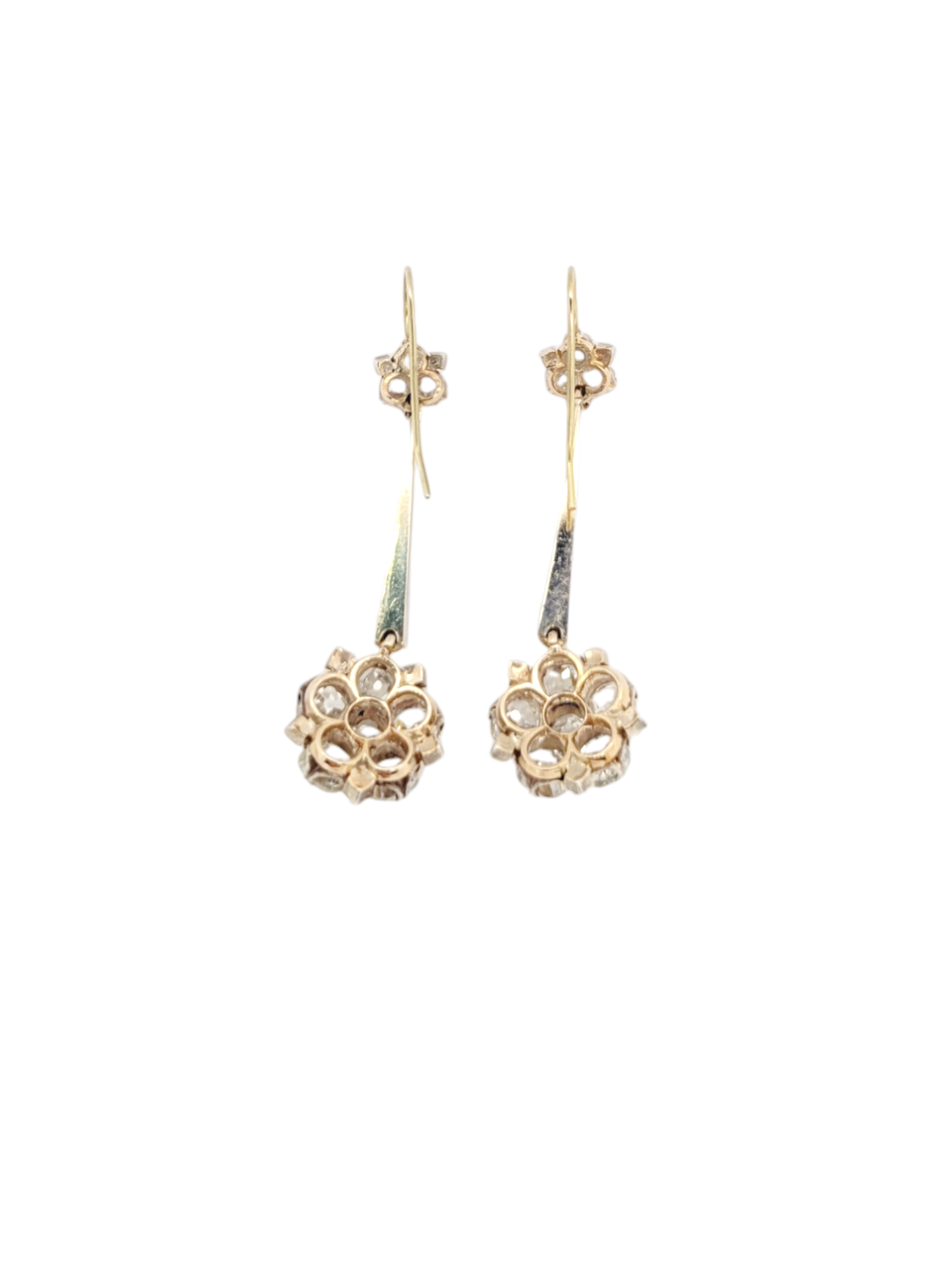 Antique chunky old mine diamond cluster drop earrings SKU: 7615