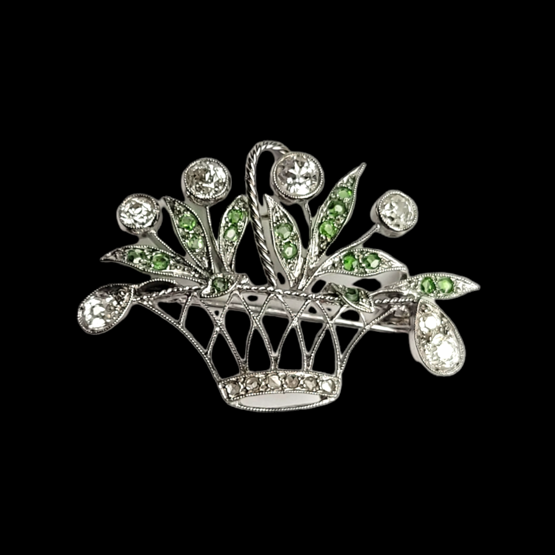 Antique diamond and green demantoid garnet giardinaire brooch sku 5819