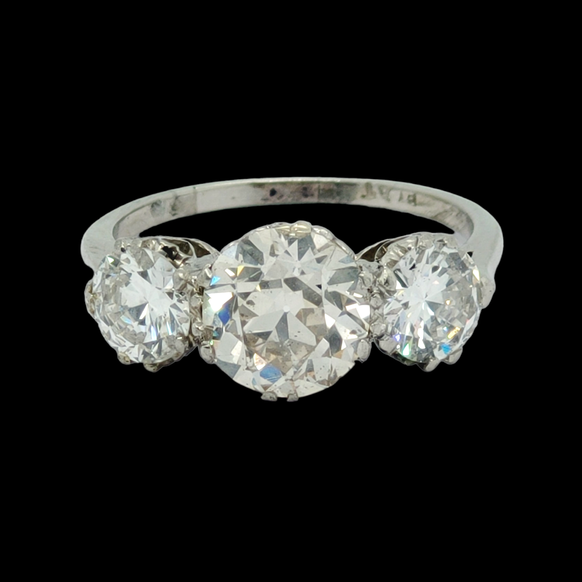 Lovely old European transitional cut diamonds 2.01ct Centre stone with 0.65ct diamonds either side (3.31ct) set in platinum