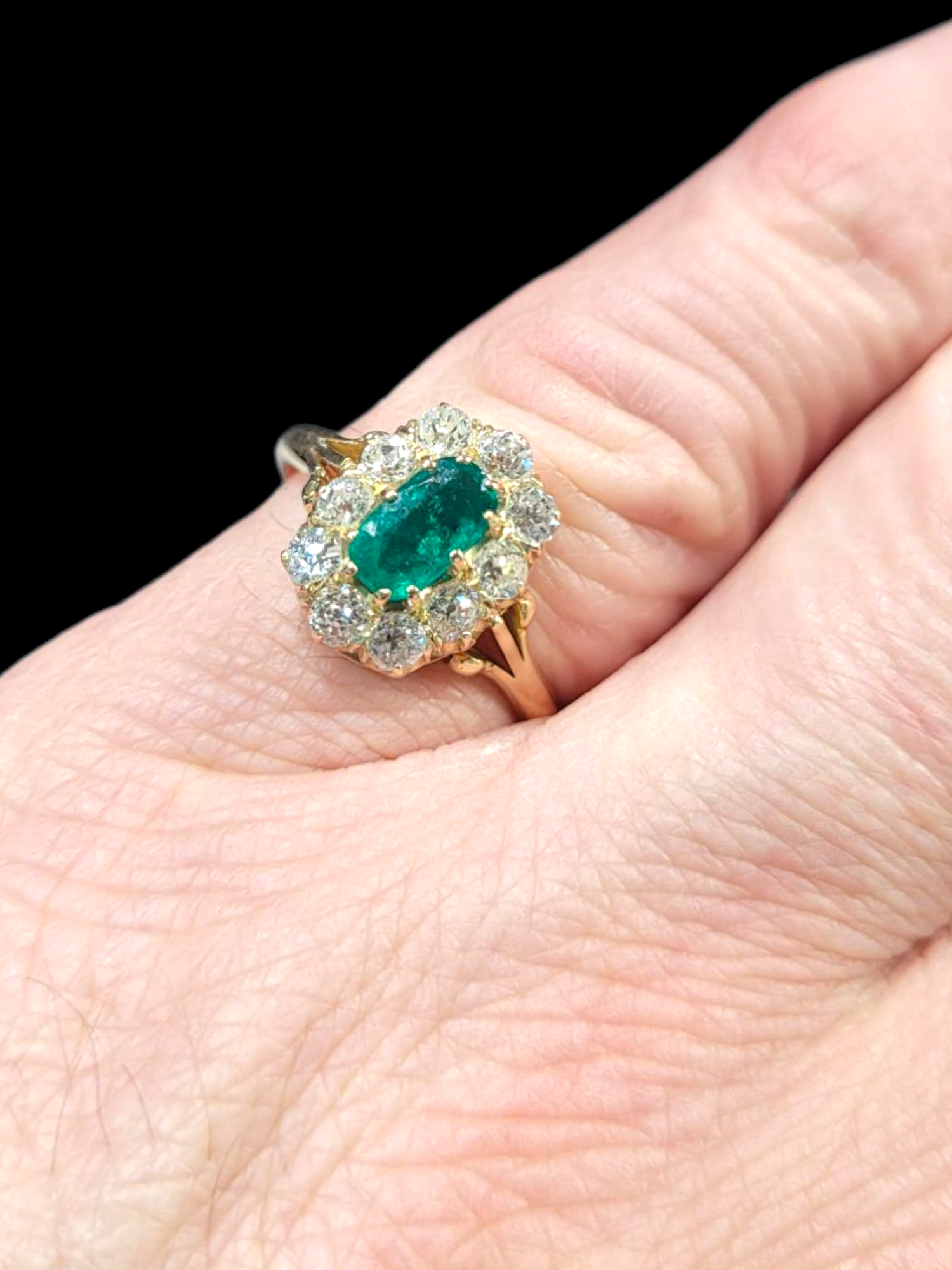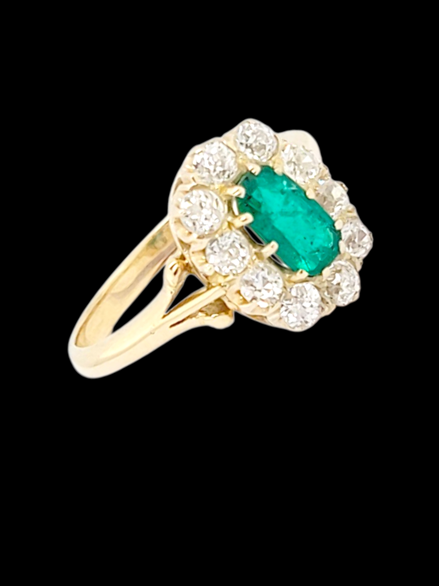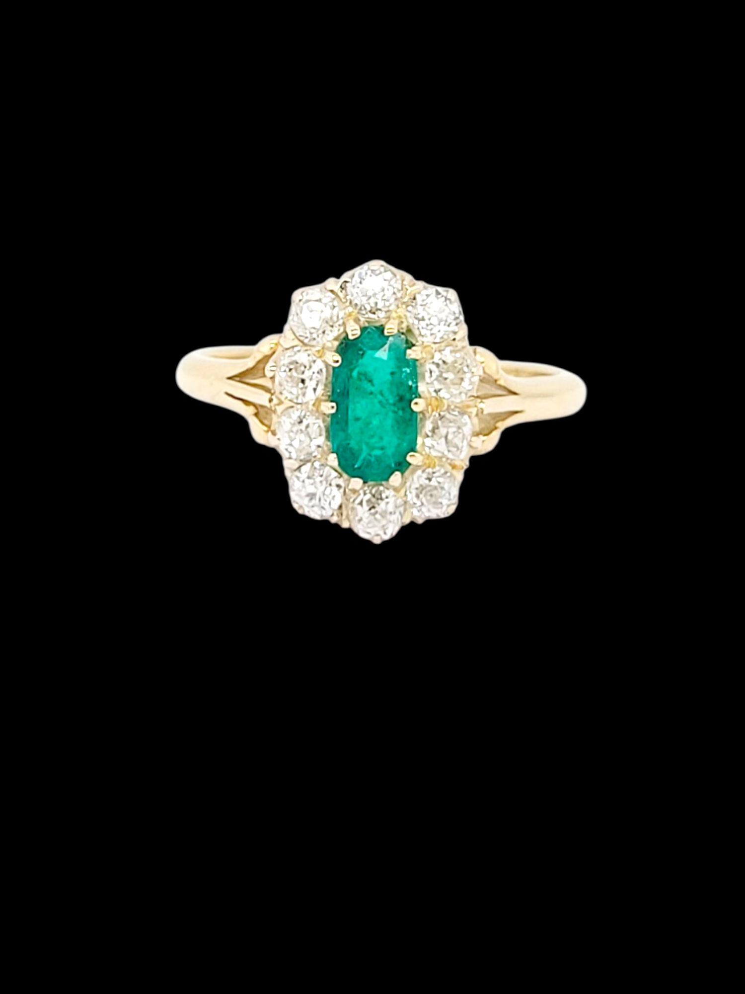 Antique emerald and diamond cluster engagement ring SKU: 8143