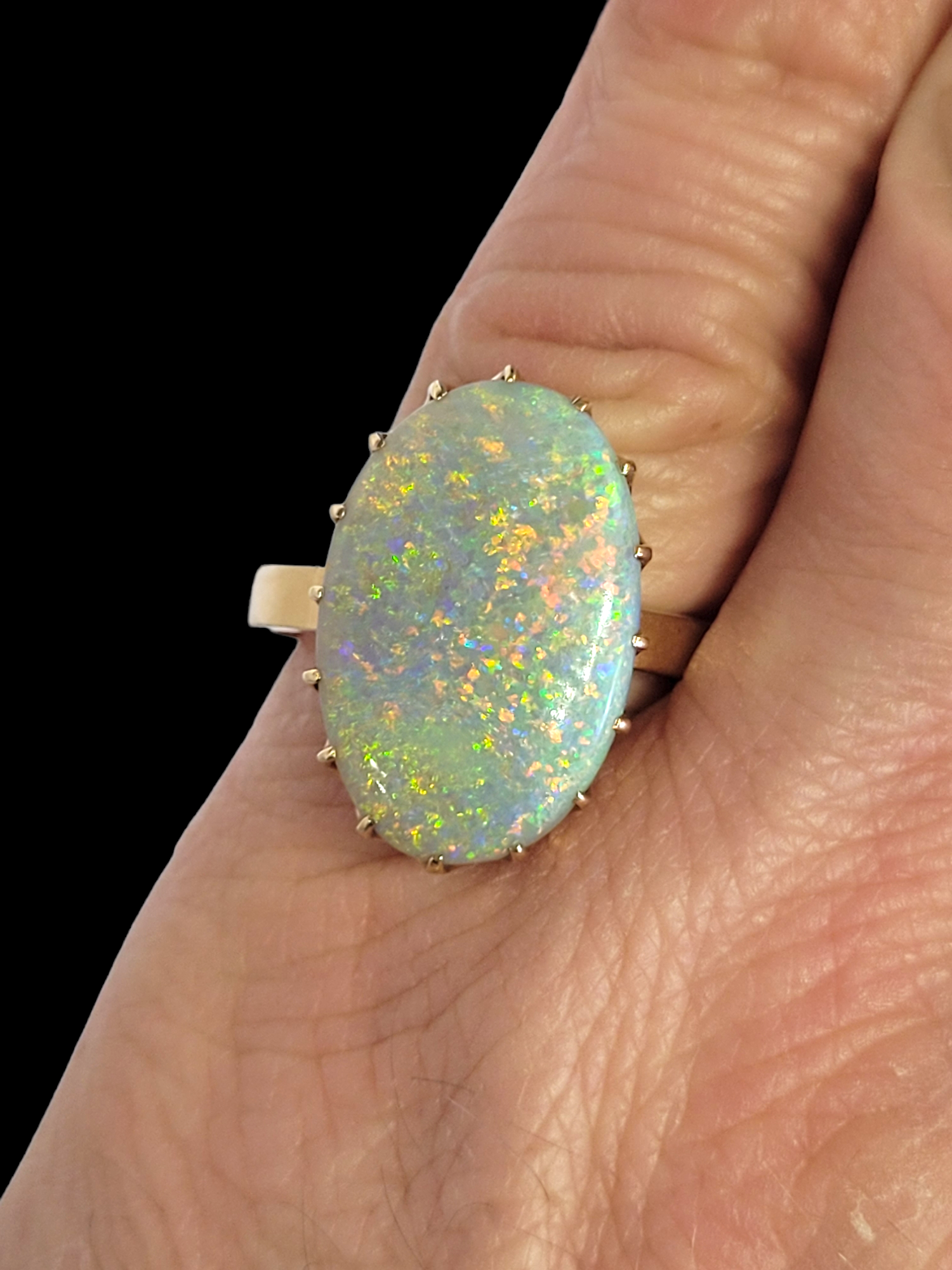 Lovely antique oval opal set in gold 21mm x 14mm. Circa 1900