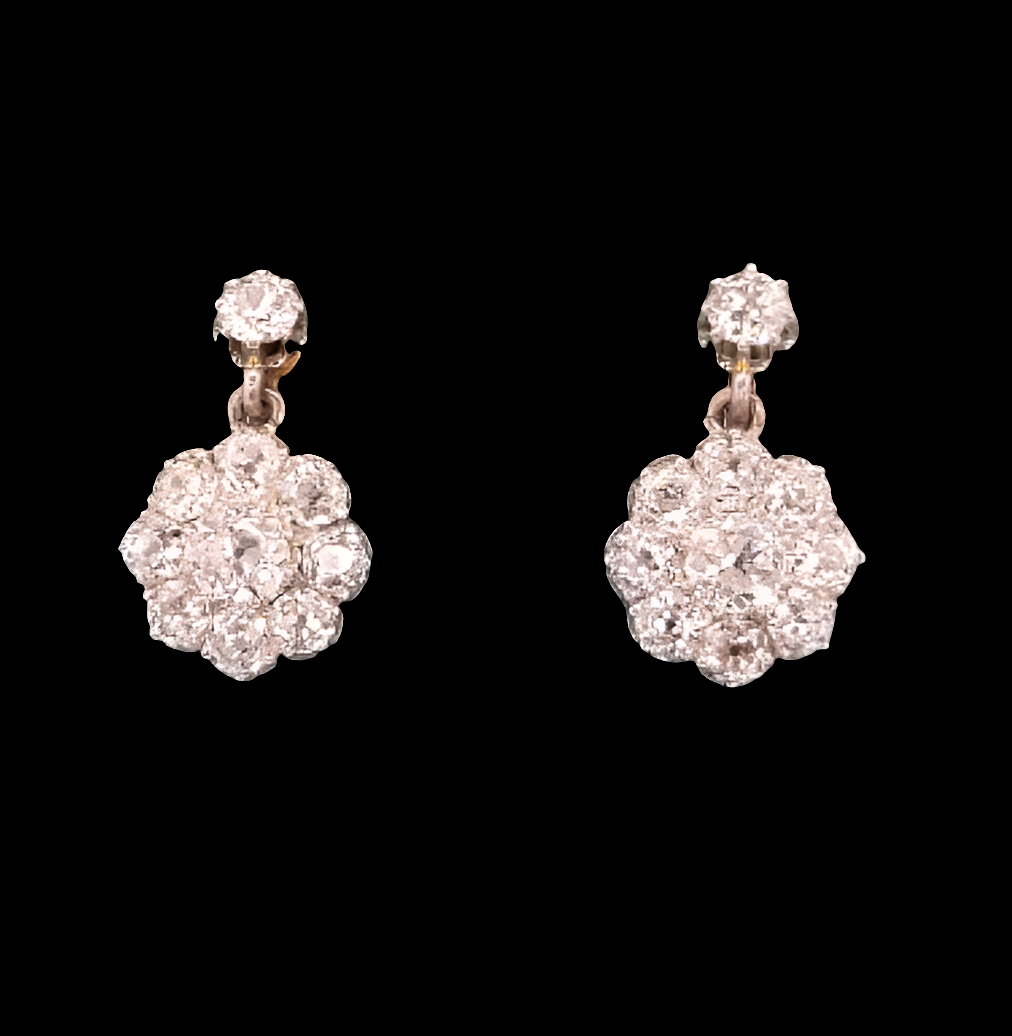 Antique old cut diamond cluster drop earrings SKU: 7193