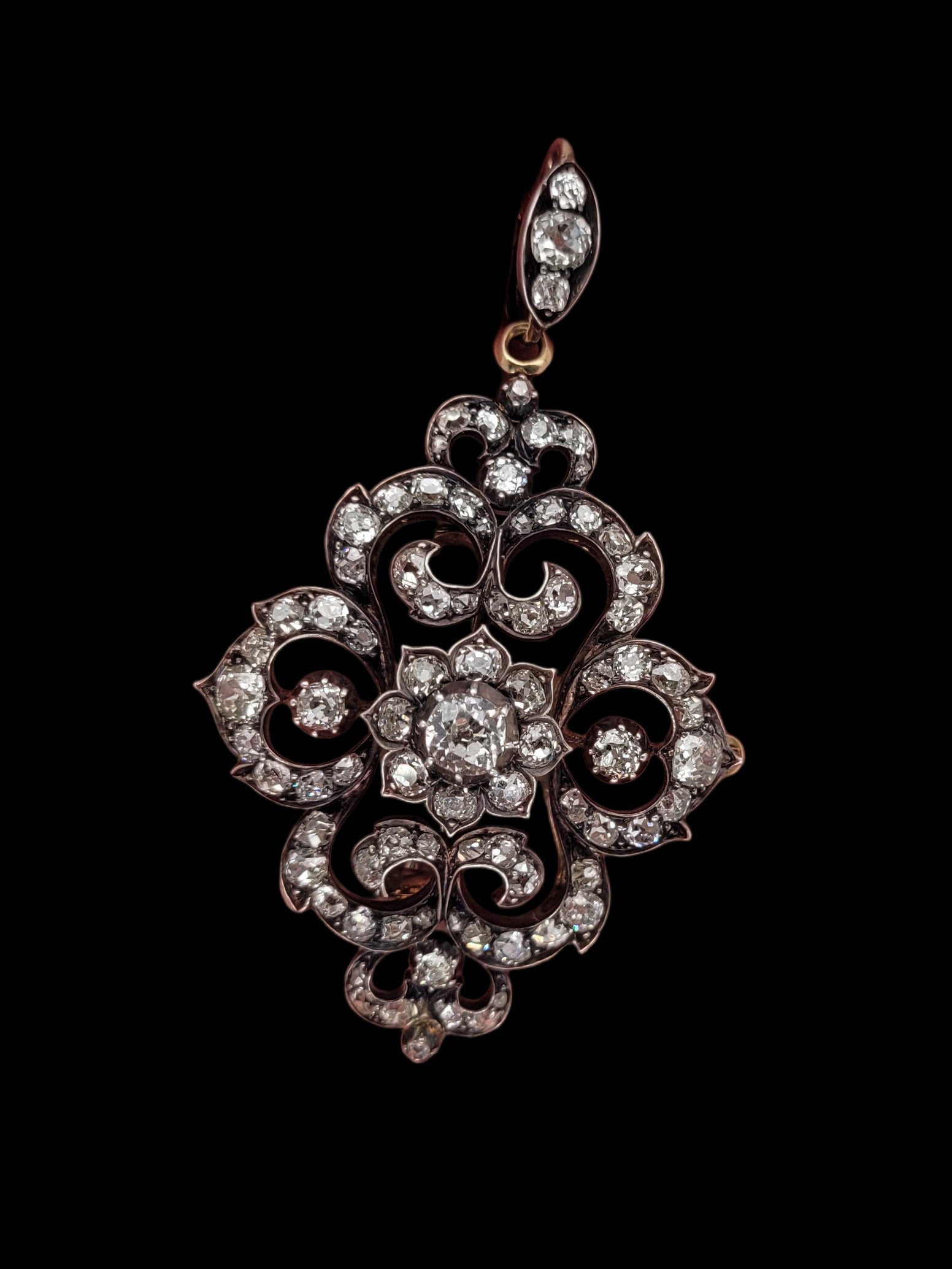 Antique old mine cut diamond pendant/brooch sku 8550