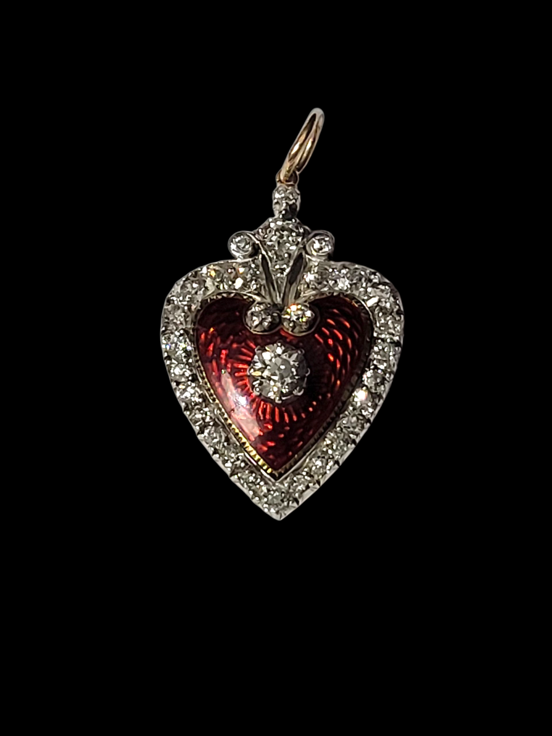 Antique red guilloche enamel and diamond heart pendant SKU: 8294