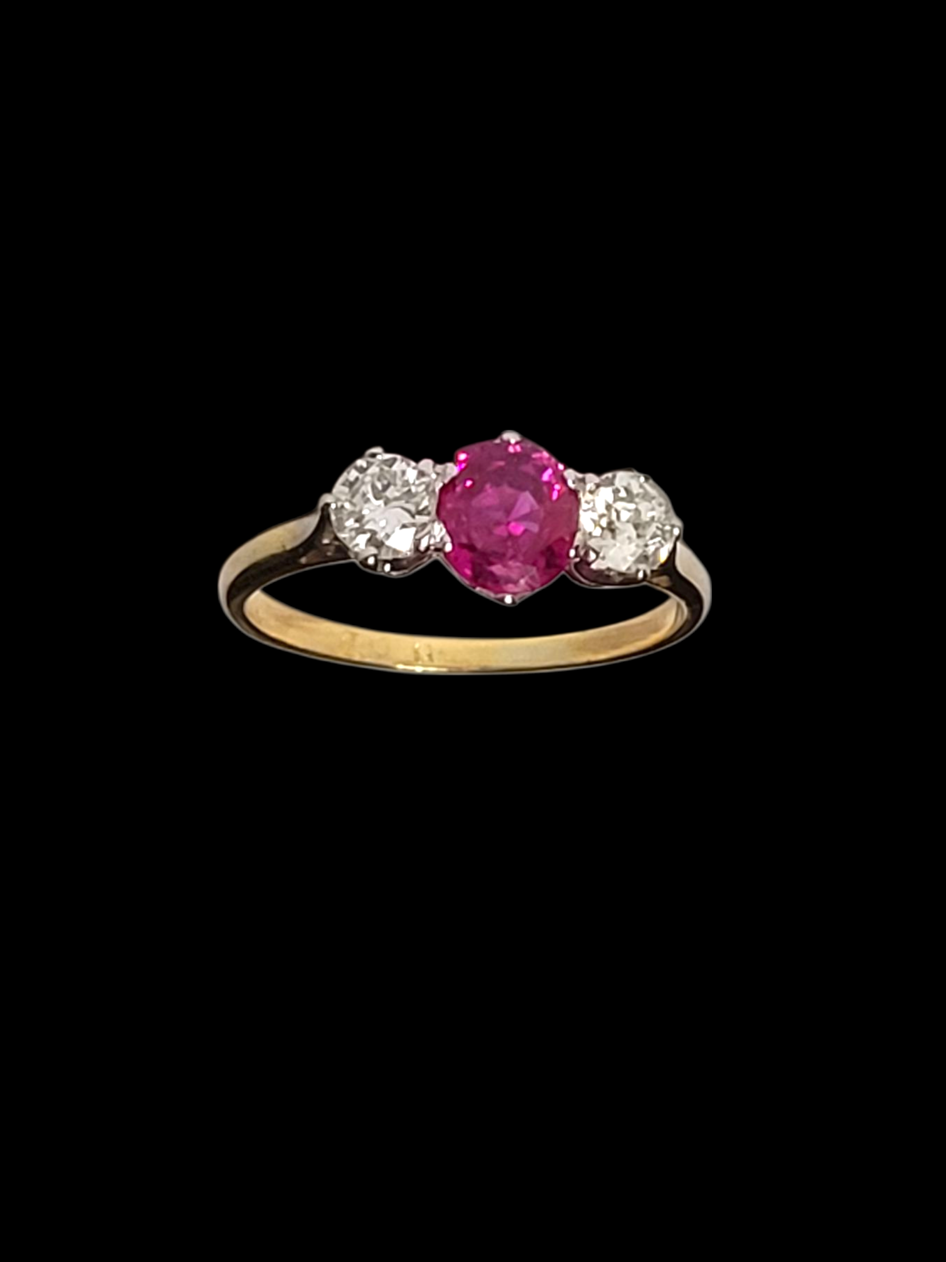Antique ruby and diamond three stone engagement ring SKU: 8293