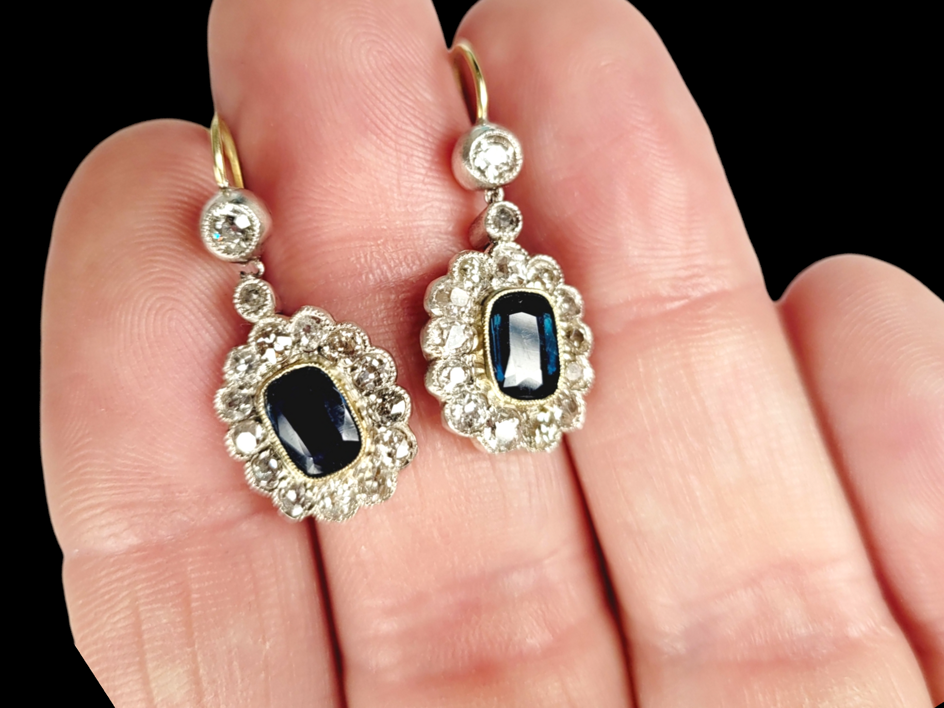 Antique sapphire and diamond cluster drop earrings SKU: 7863