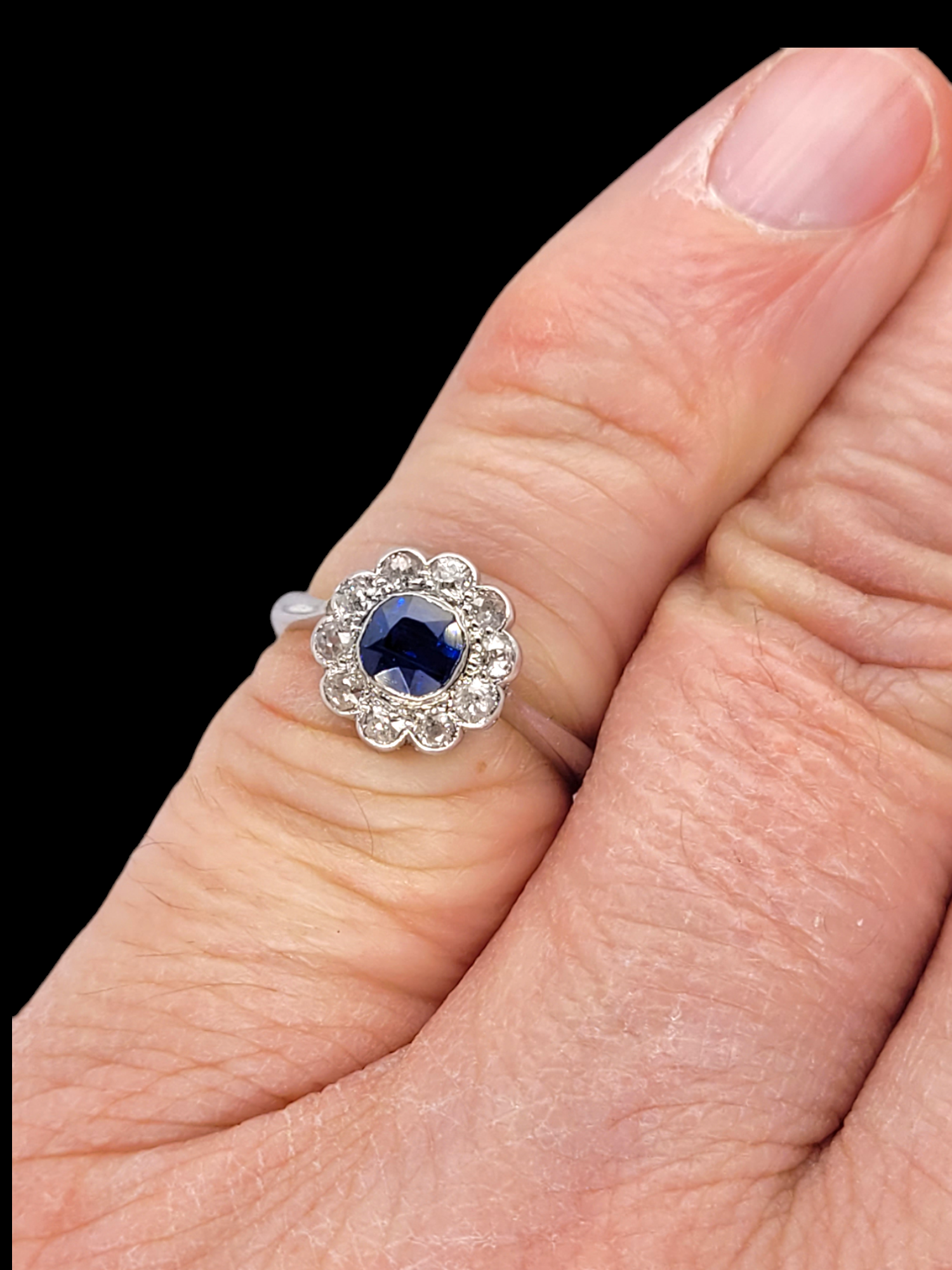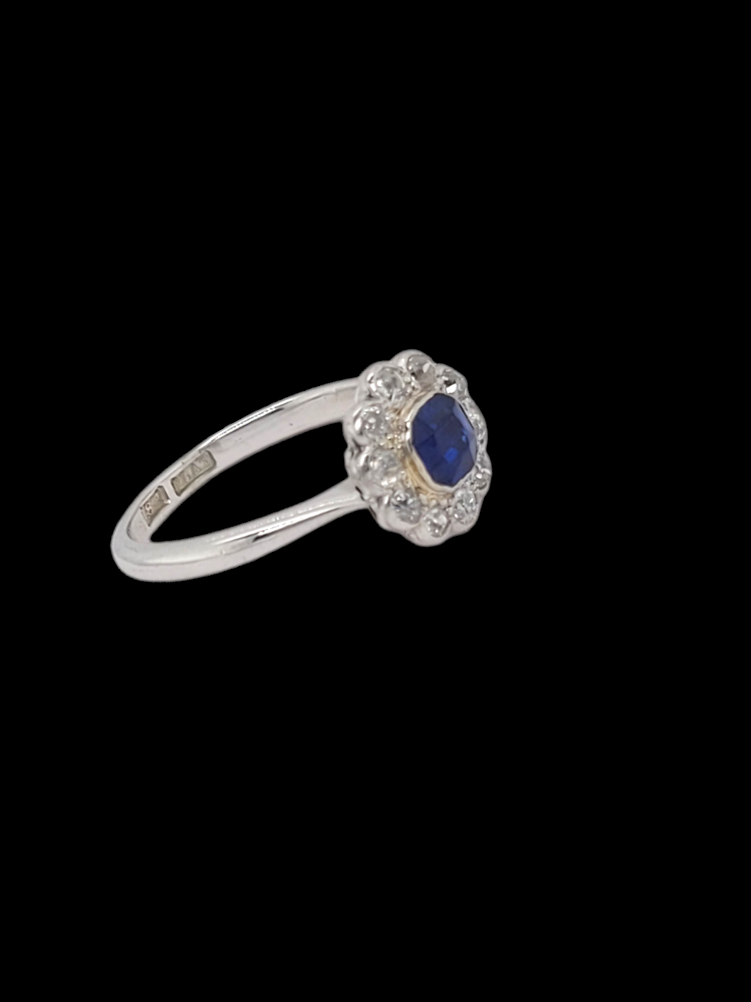 Antique sapphire and diamond daisy cluster ring SKU: 7223