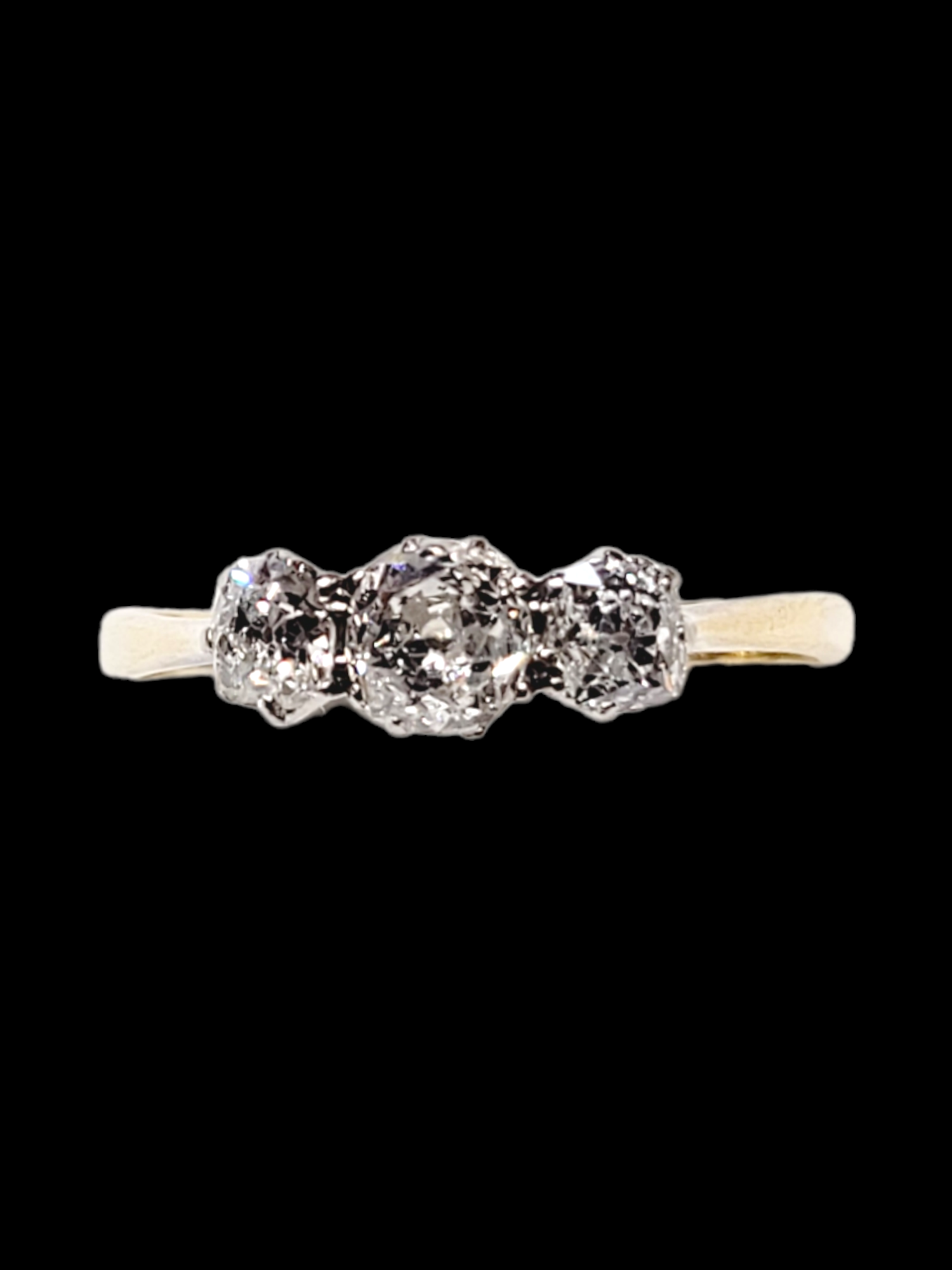 1.25ct of old mine cut cushion diamonds set in platinum and 18ct yellow gold