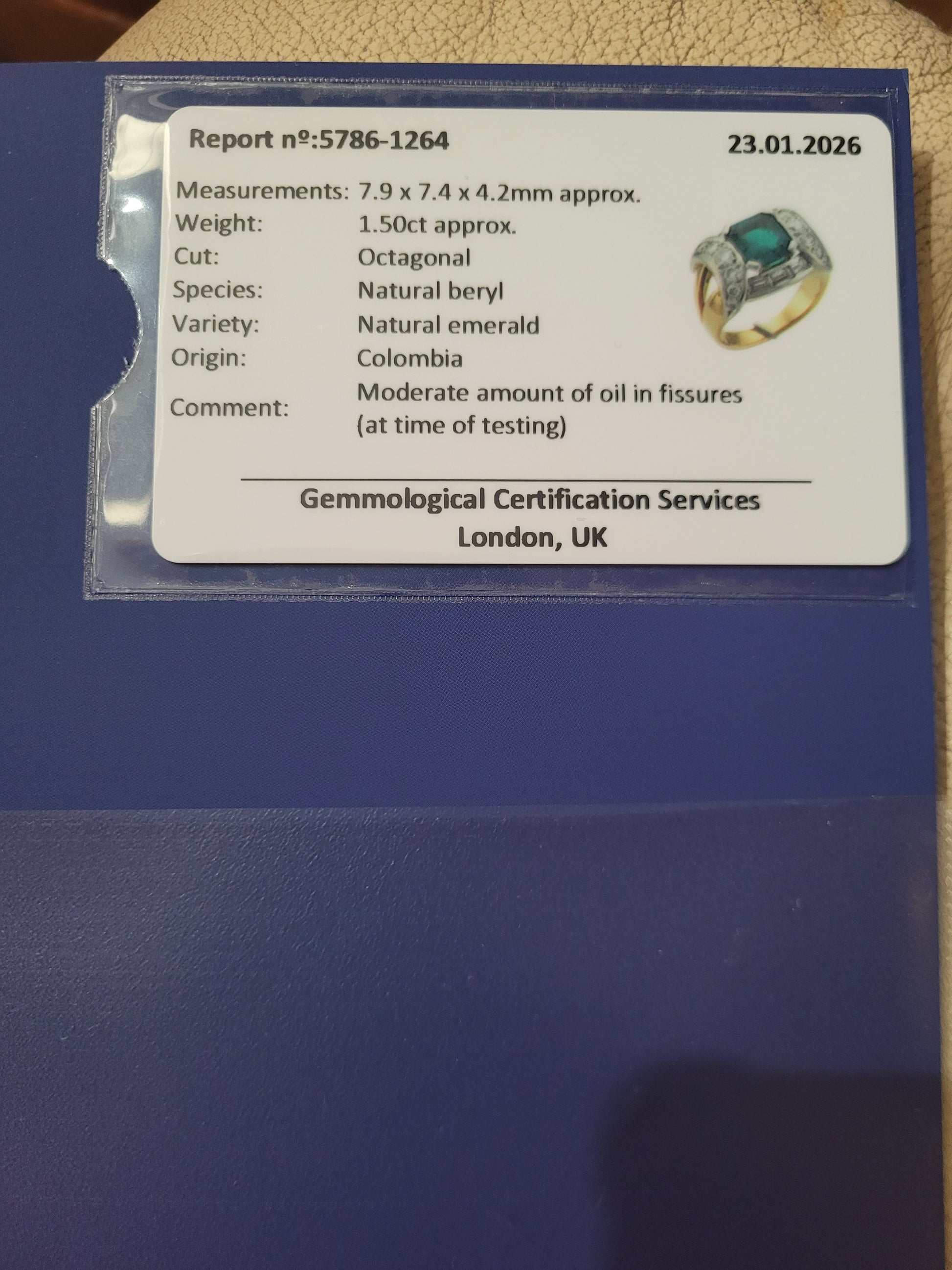 Art deco Columbian emerald and diamond tank ring sku 8742