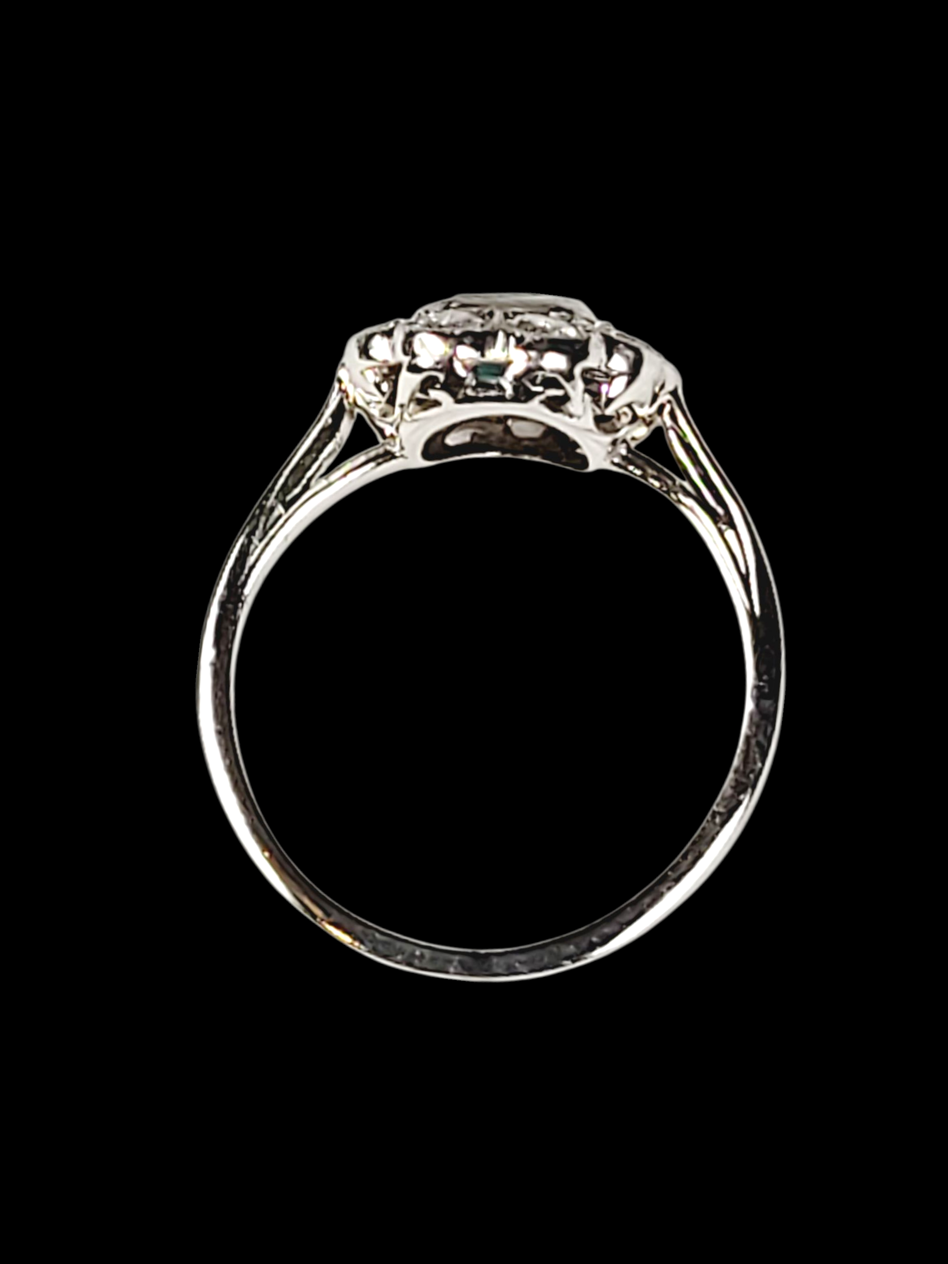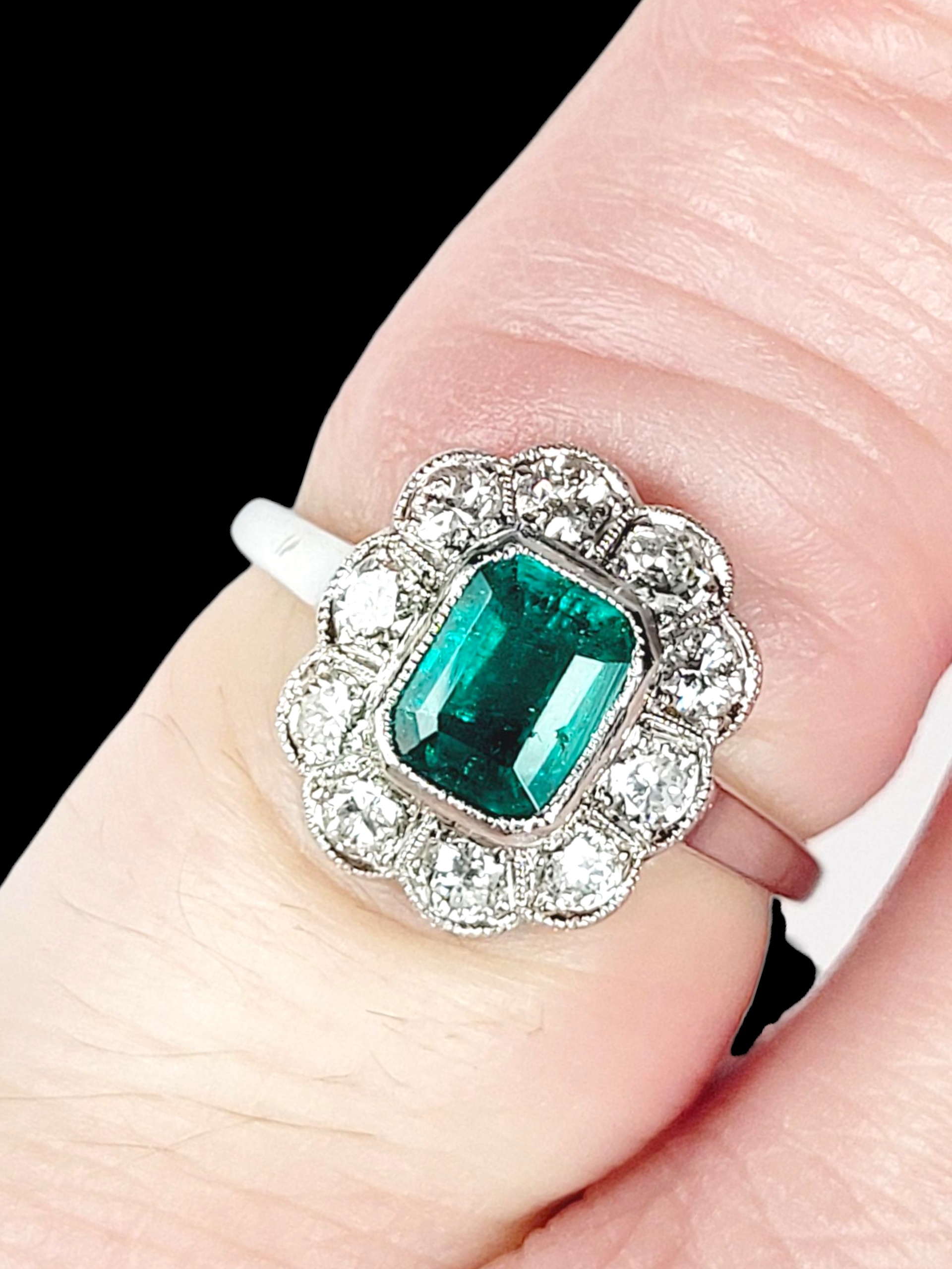 Art deco emerald and diamond cluster engagement ring SKU: 8438