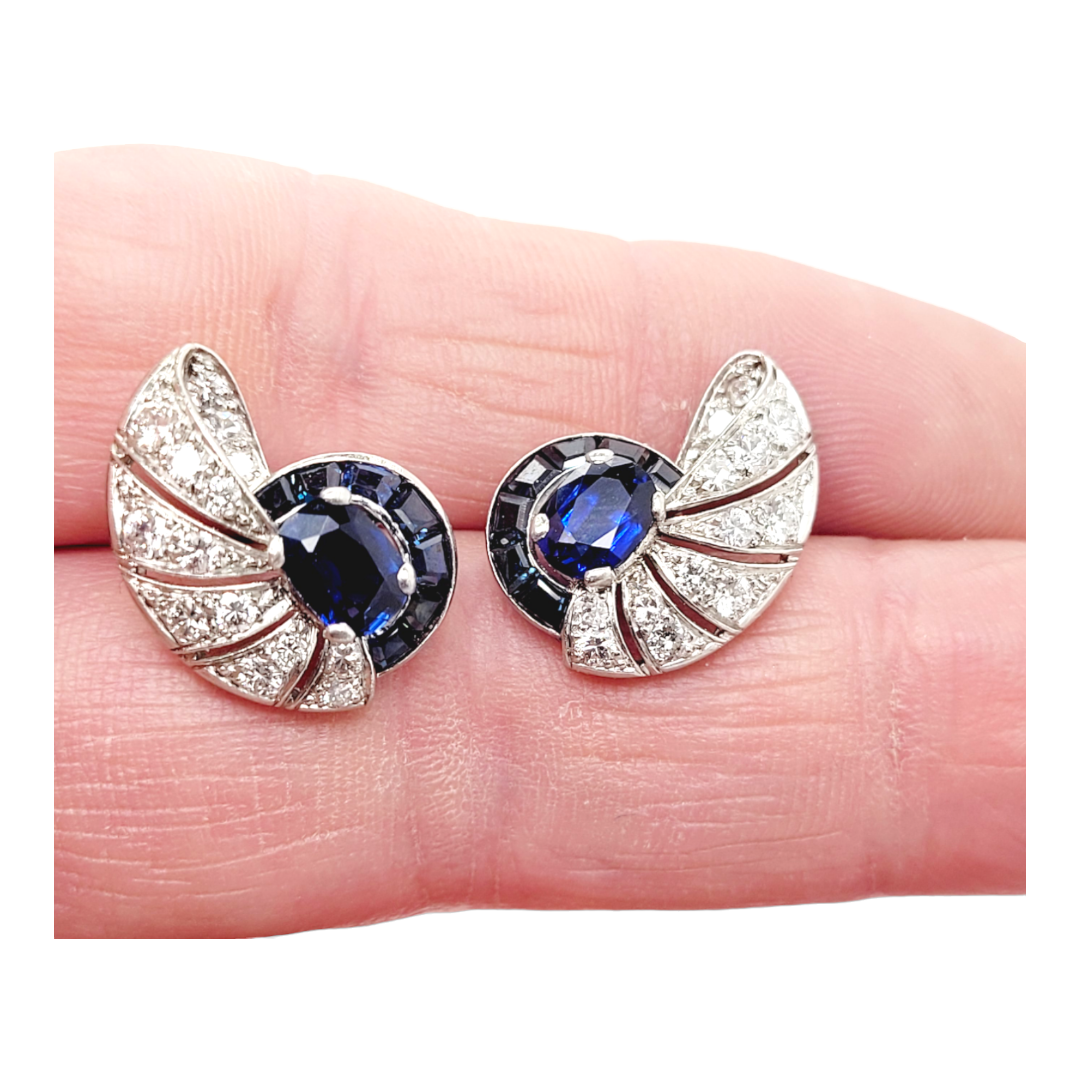 Art deco sapphire and diamond nautilus earrings SKU: 6960