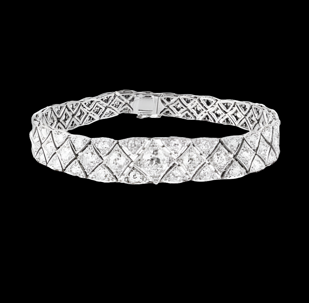 A beautiful tour de force of design and manufacture, approximately 8.5 carats of brilliant white Diamonds in a fully flexible platinum mount that is both sensuous and dramatic. A wonderful example of an early Art Deco bracelet