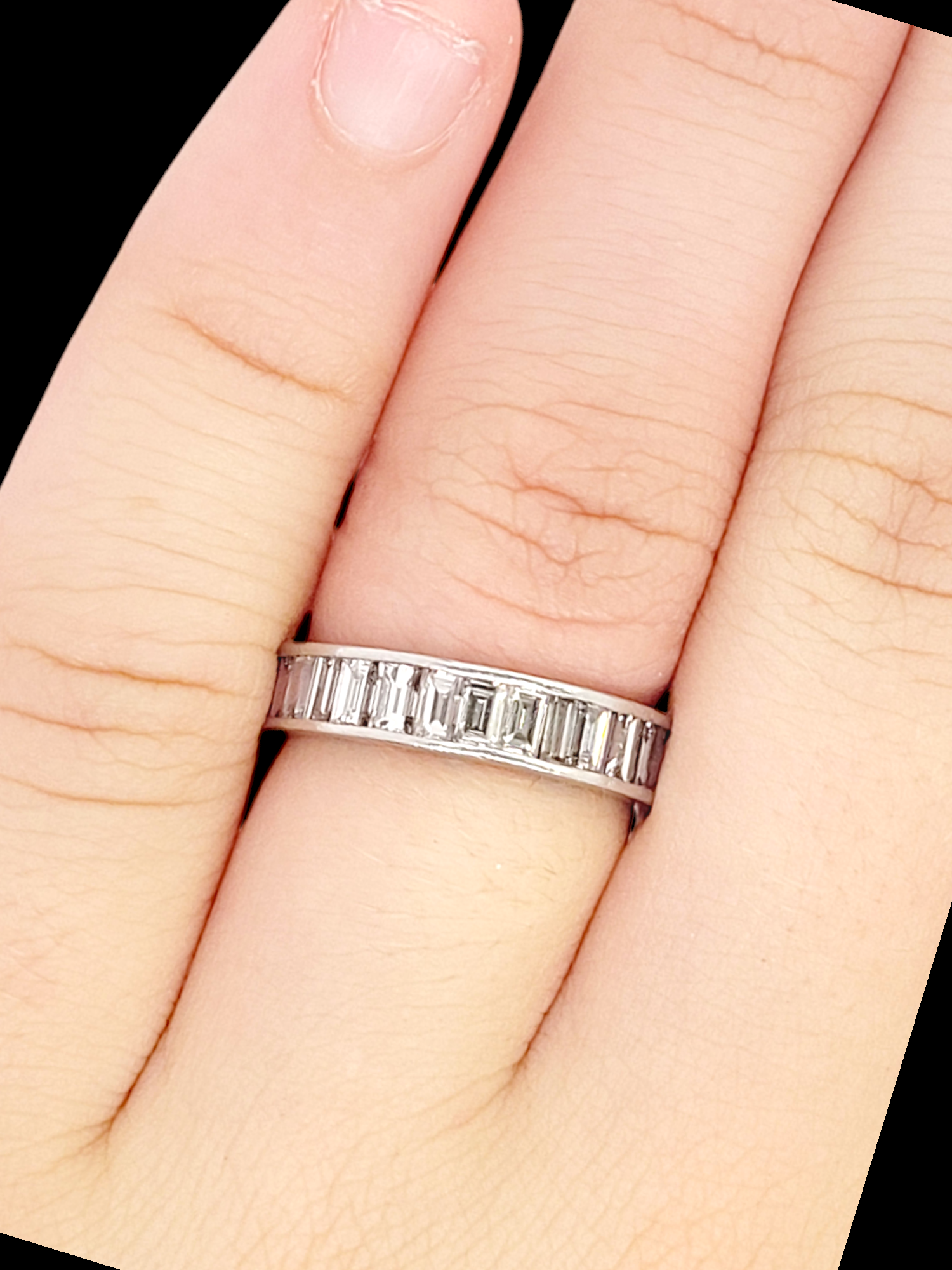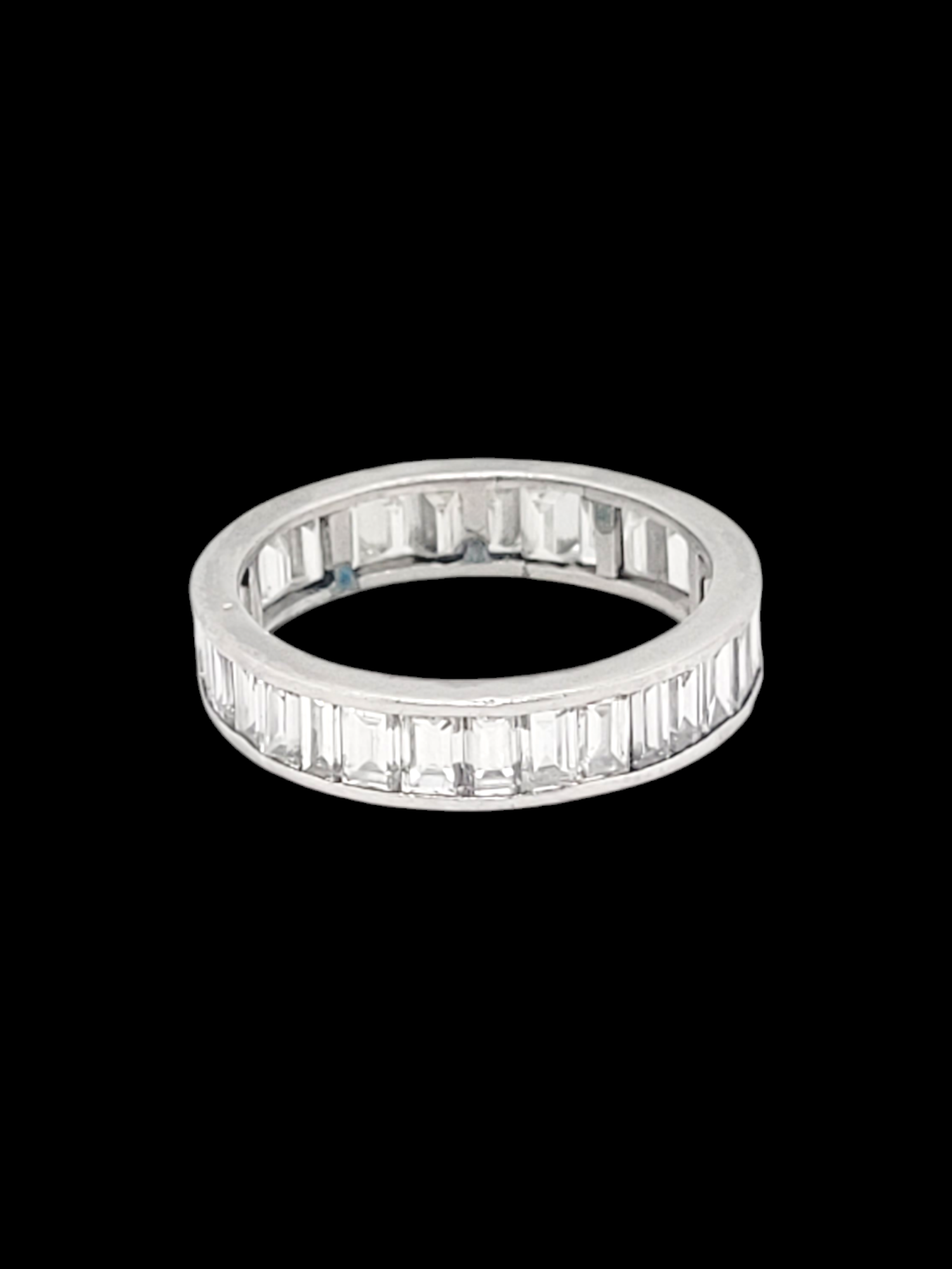 2cts of clean white baguette diamond eternity ring 4.5mm wide Finger size L 1/2 (U.S 6) all set in platinum. English circa 1940