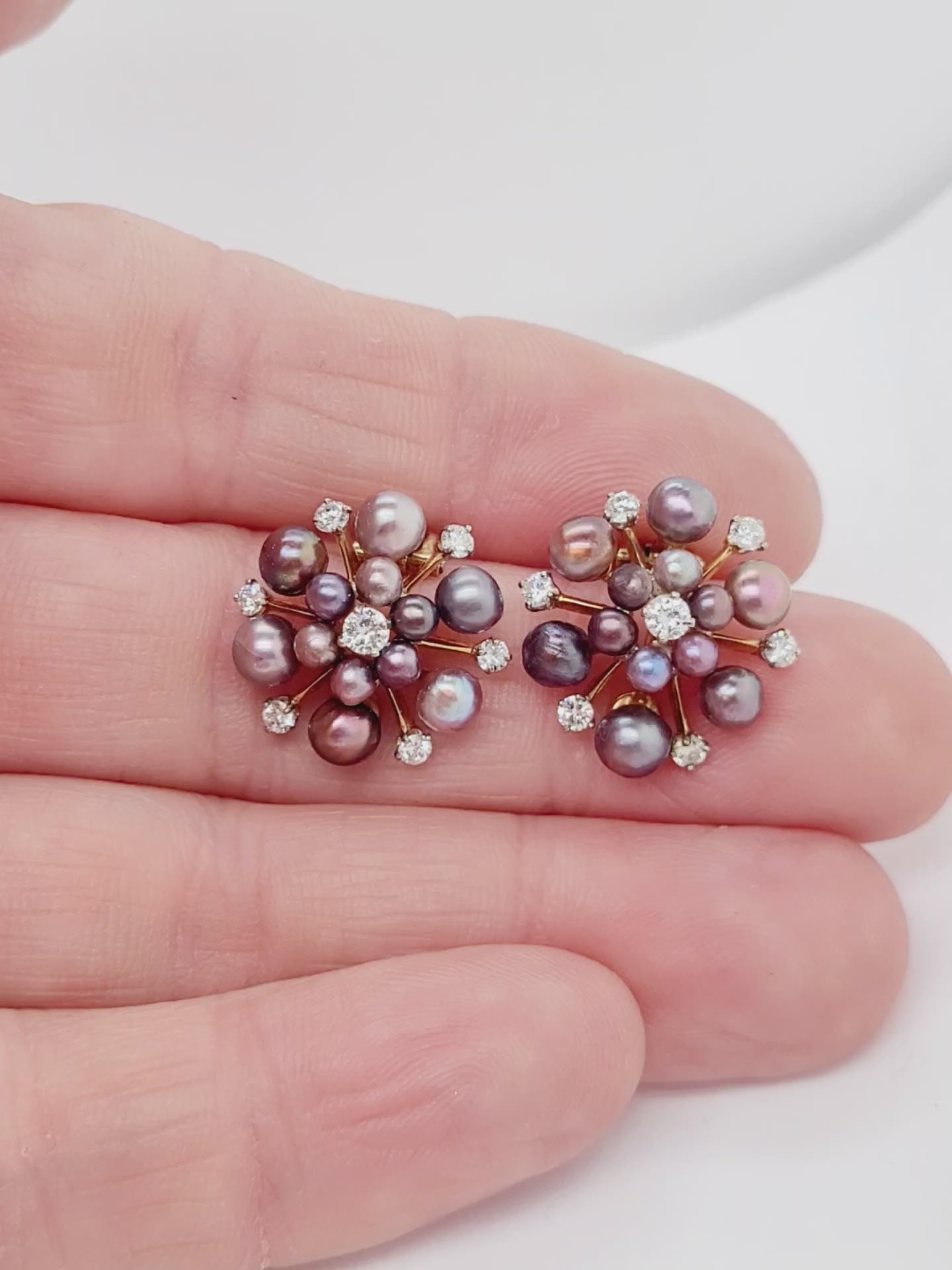 Chic coloured natural pearl and diamond snowflake earrings SKU: 7018