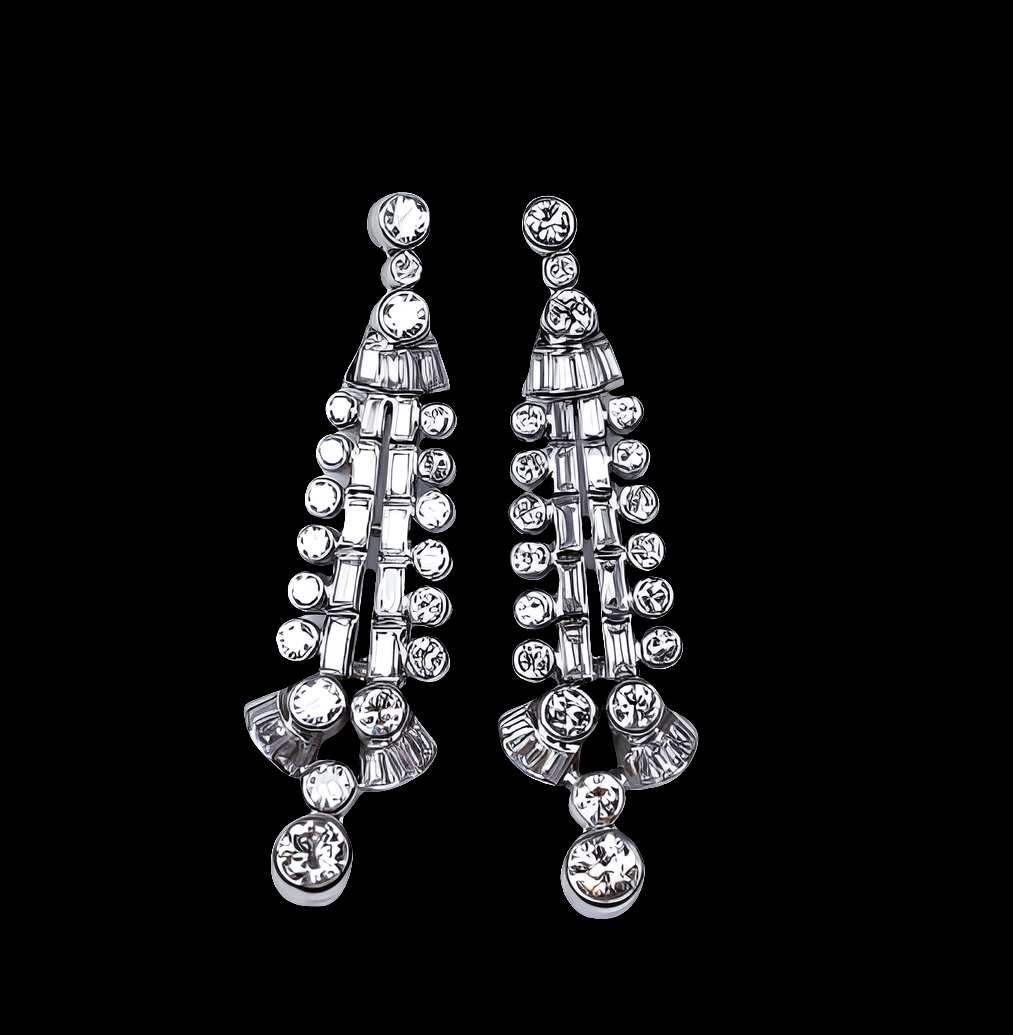 Stylish 1950's diamond earrings with 3.5cts of clean white diamonds set in platinum 50mm long (2 inches)
