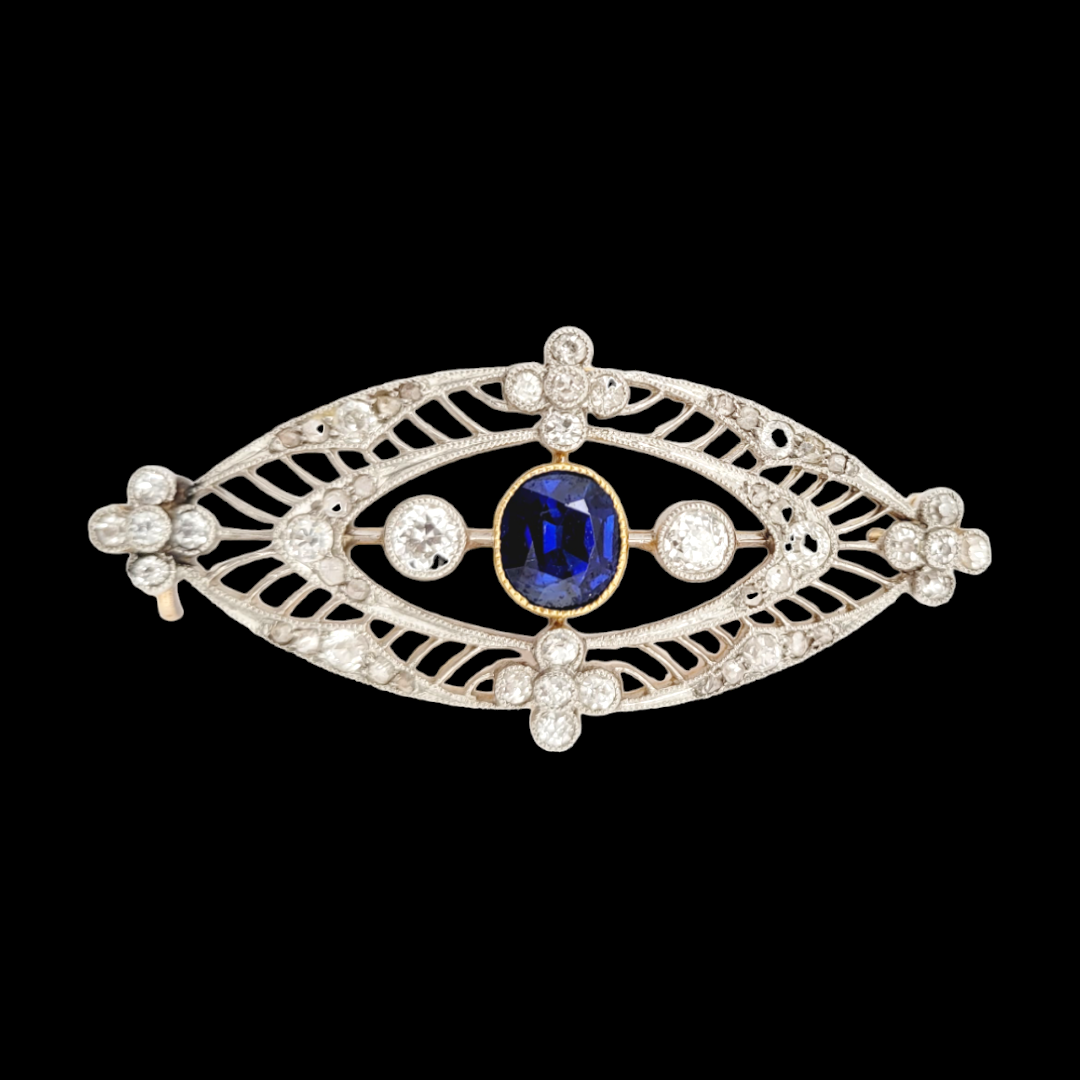 Edwardian sapphire and diamond navette shaped brooch SKU: 6787