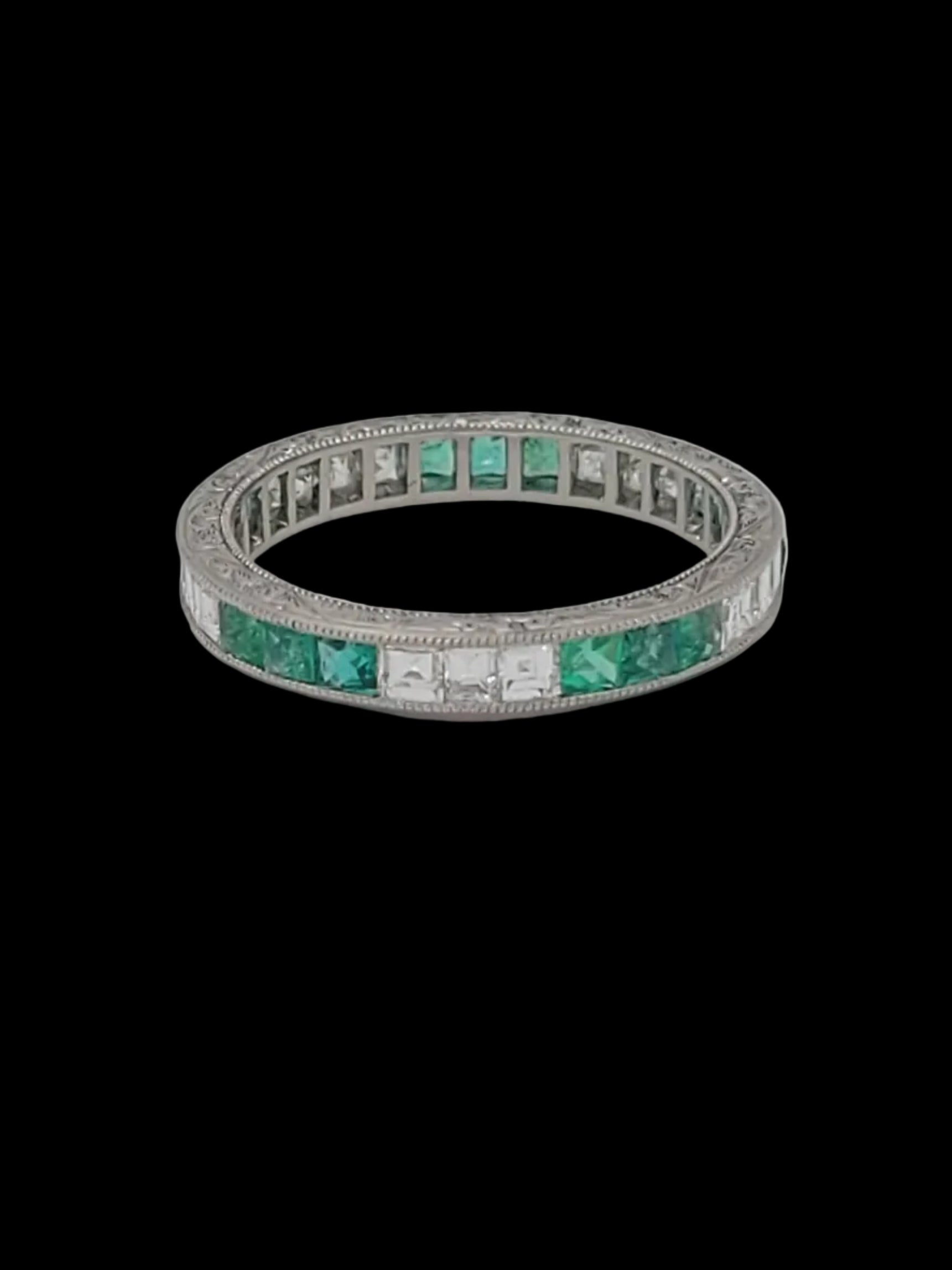 Emerald and diamond full hoop eternity band sku 8746