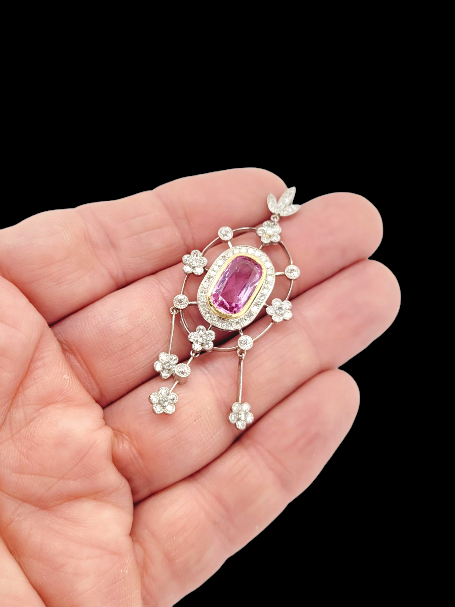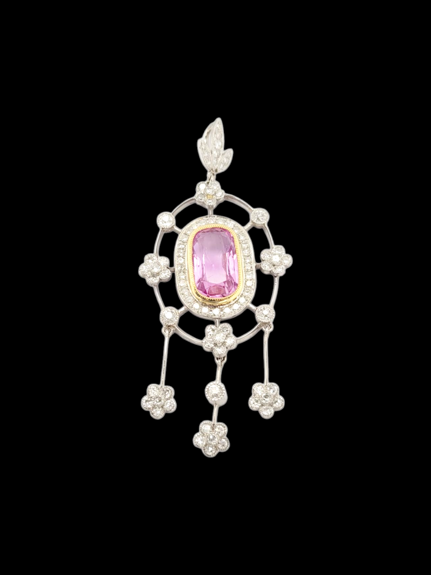 Fine Antique pink topaz and diamond pendant SKU: 8098