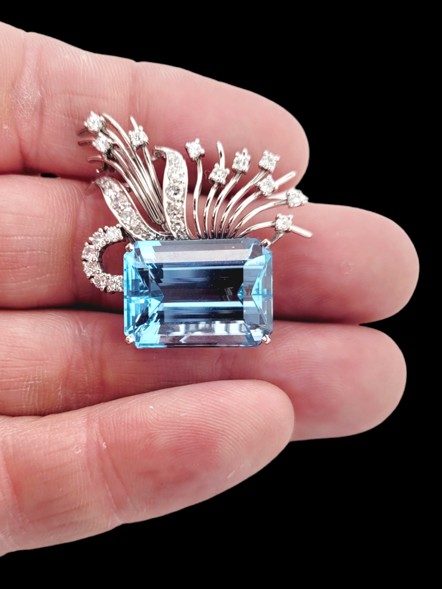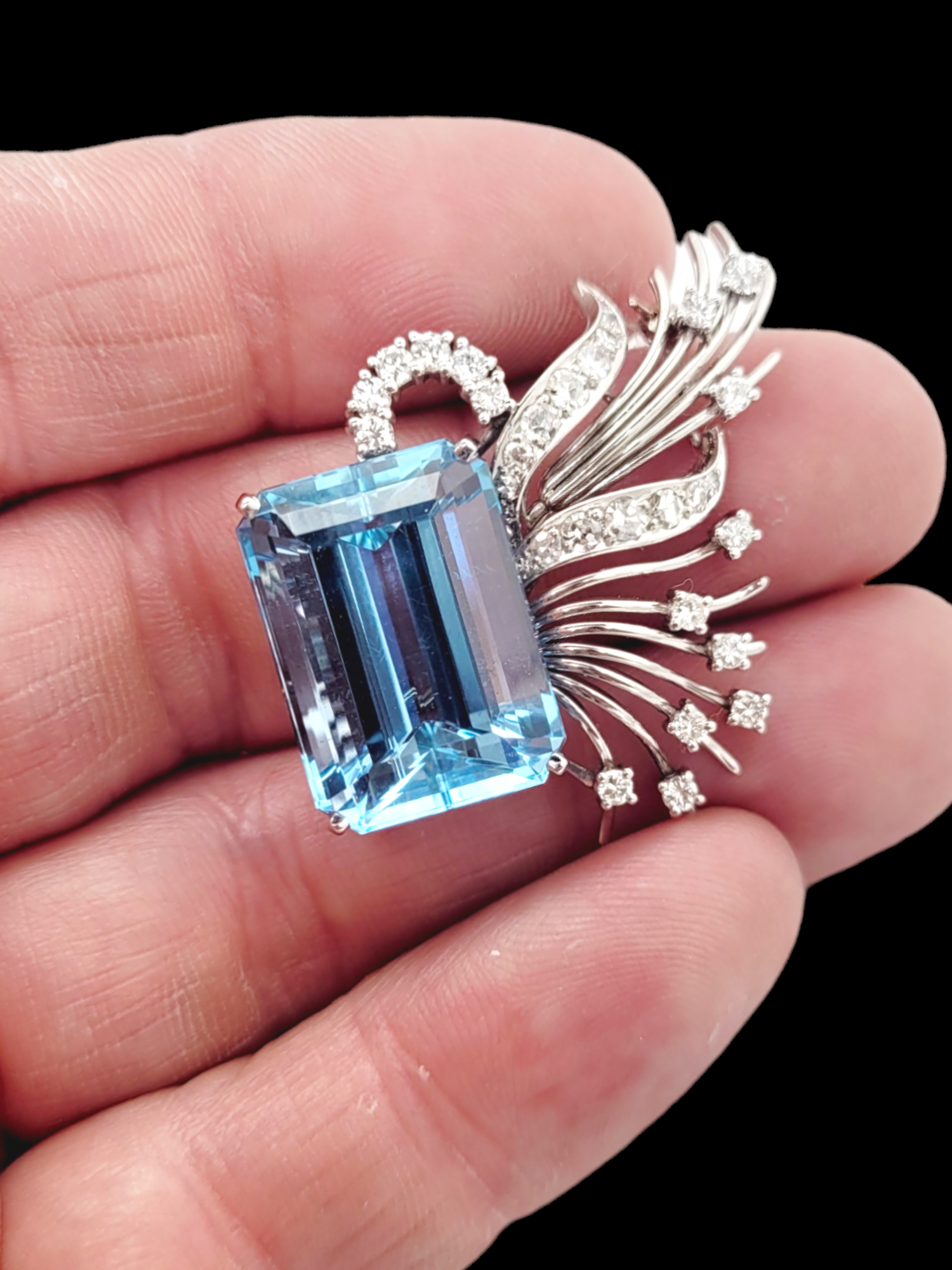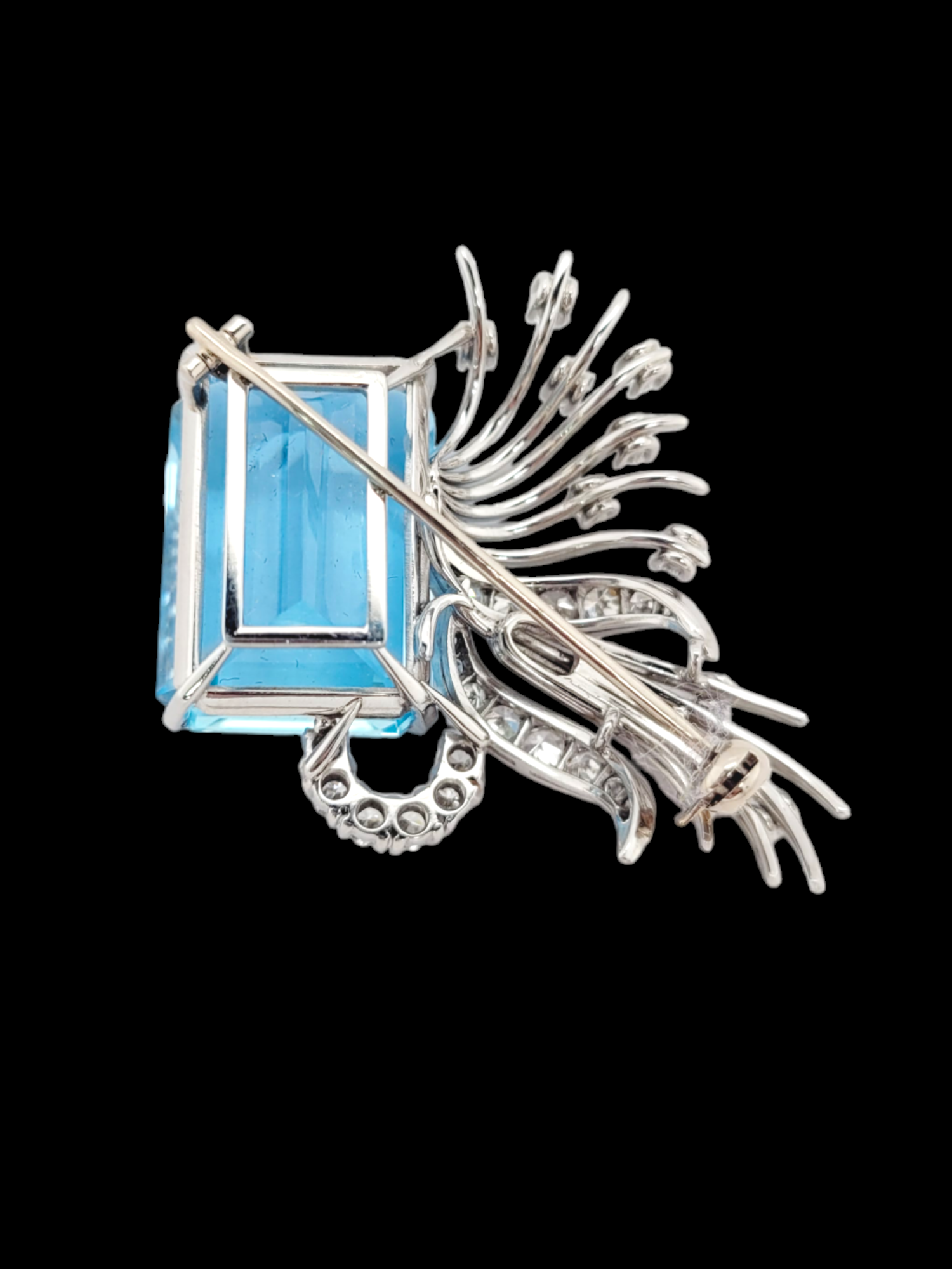 Fine Aquamarine and diamond vintage brooch SKU: 7346