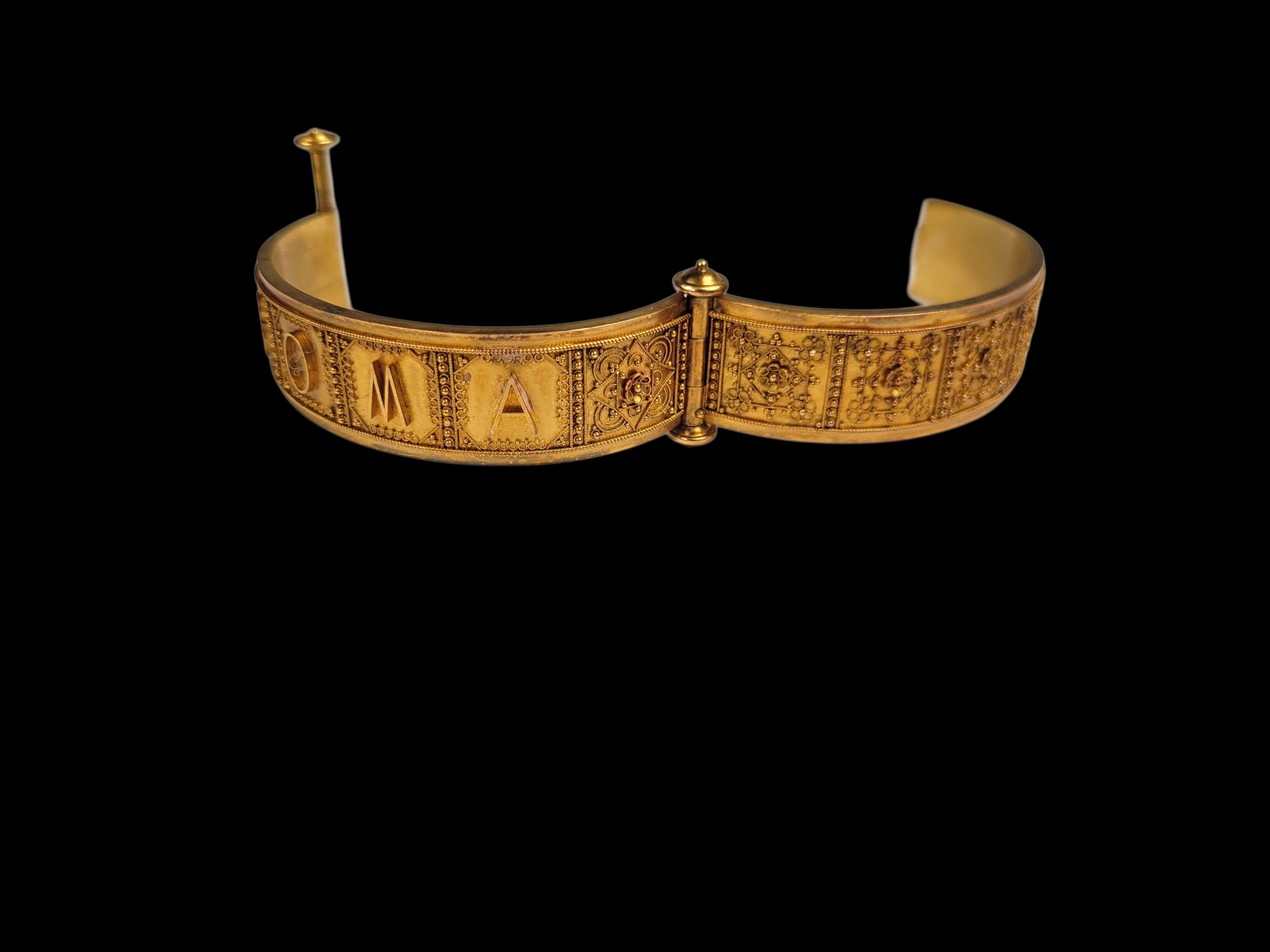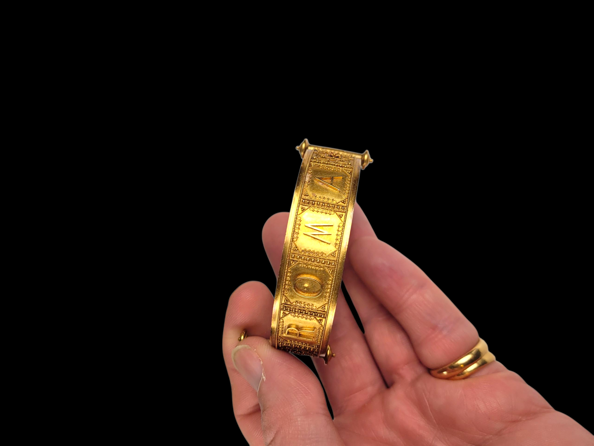 Fine Archaeological revival 18ct buttery yellow gold ROMA bangle SKU: 8337