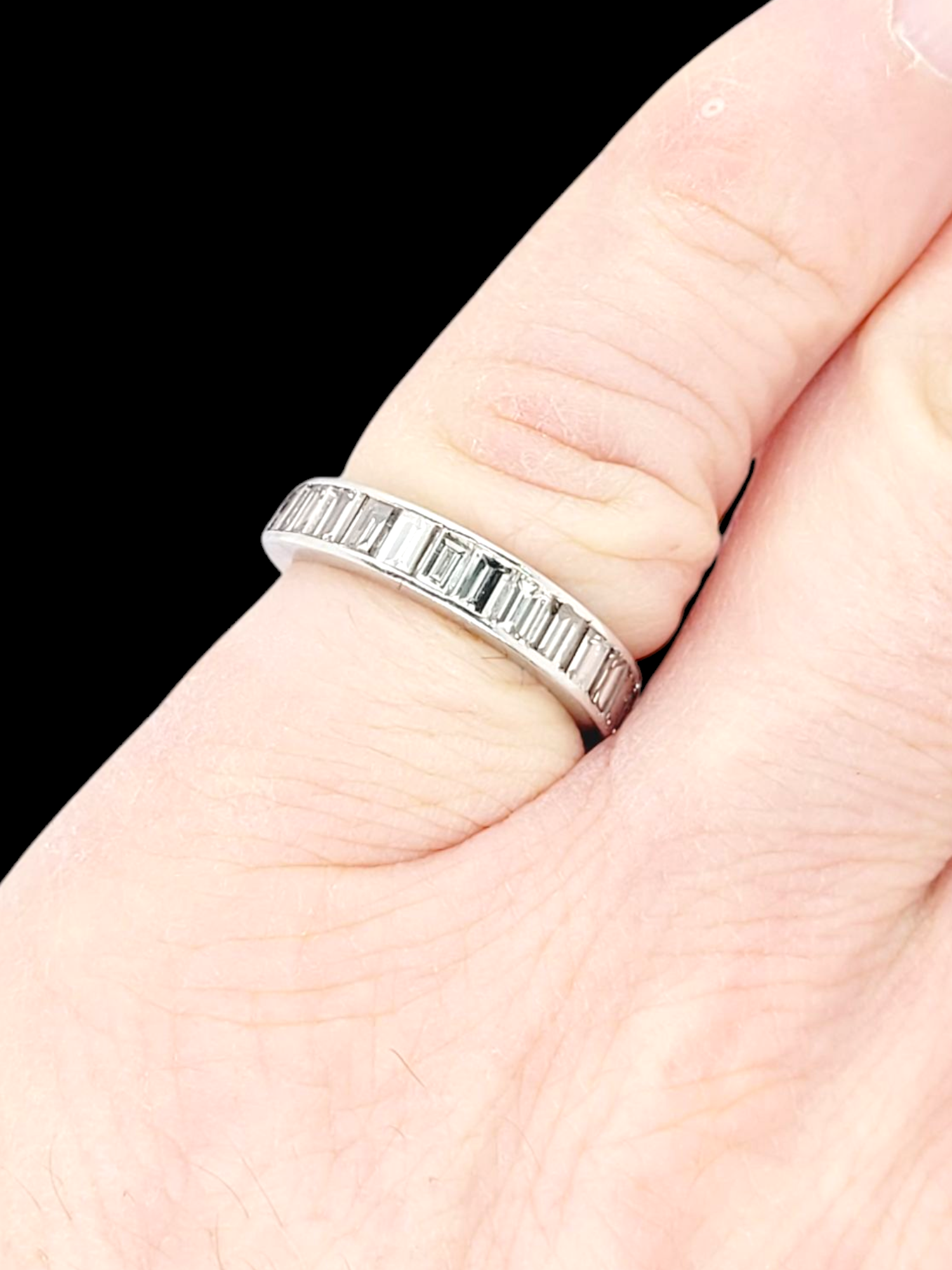 5mm wide set in 18ct white gold with an 18ct yellow gold shank. English circa 1970. Currently finger size K 1/2 (U.S 5.5)
