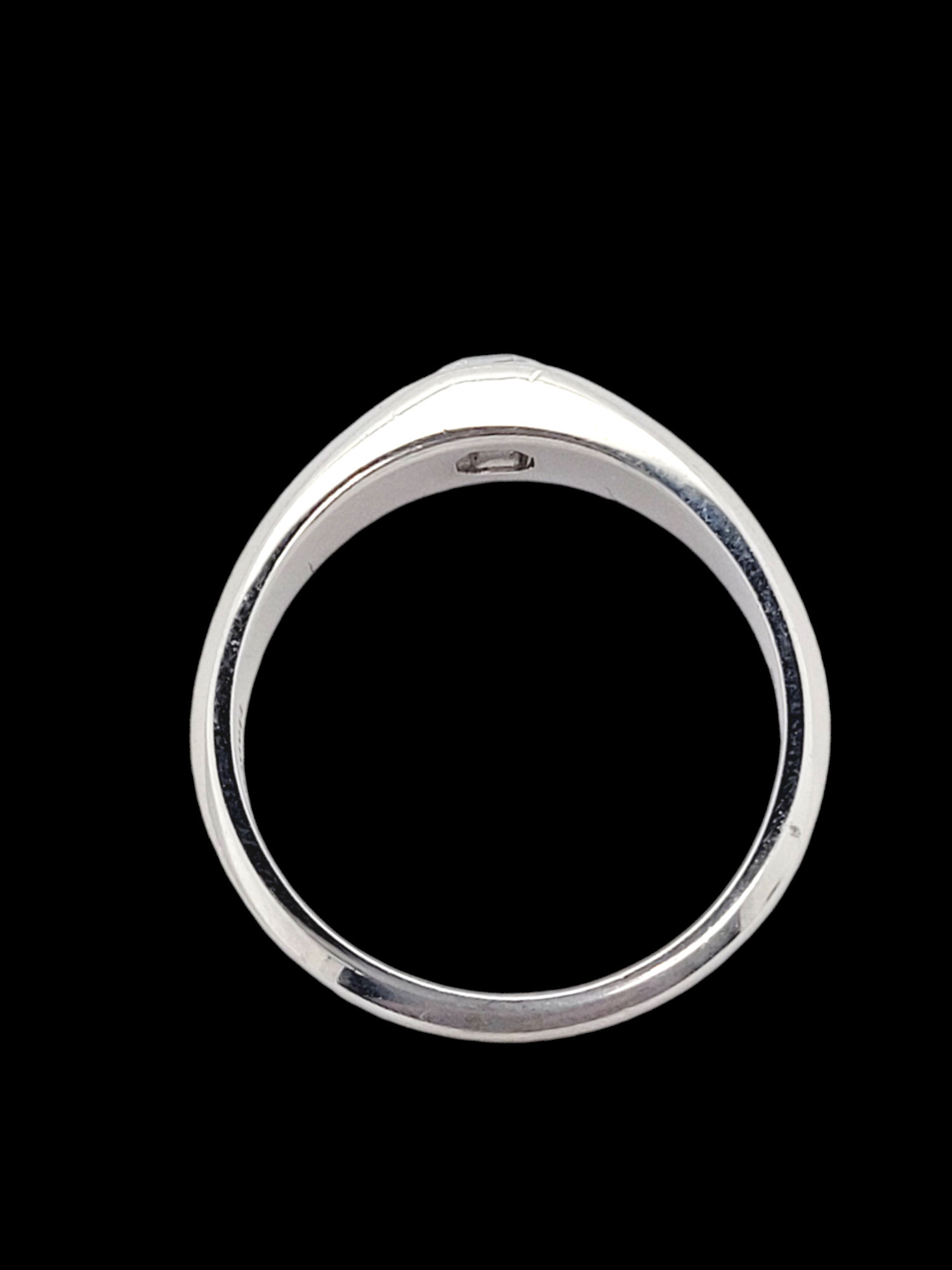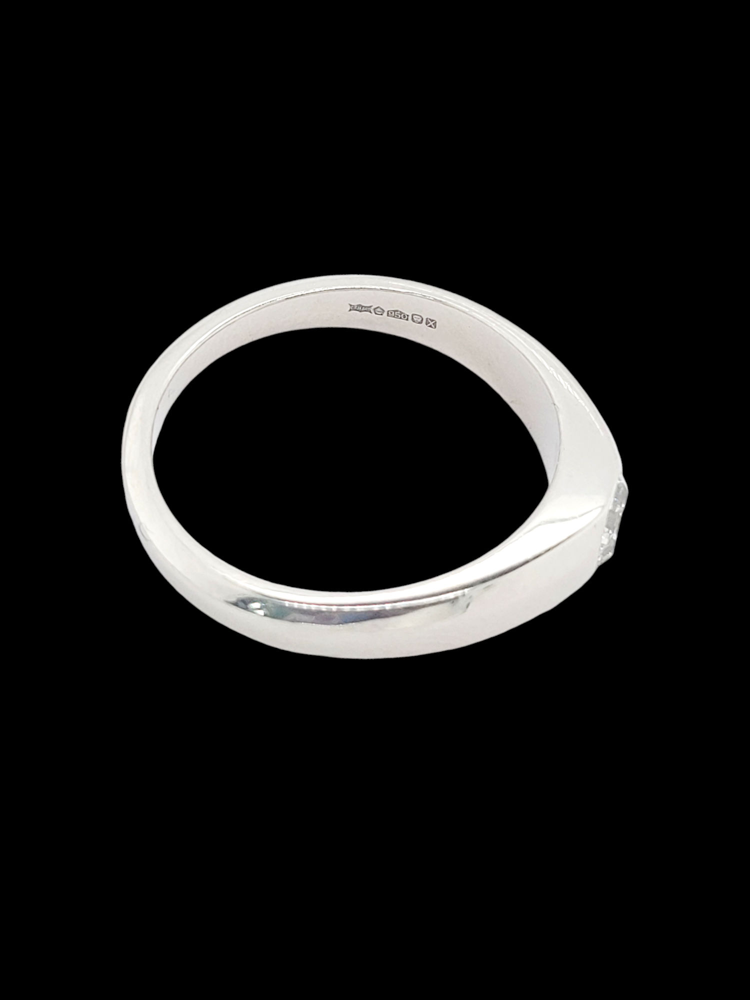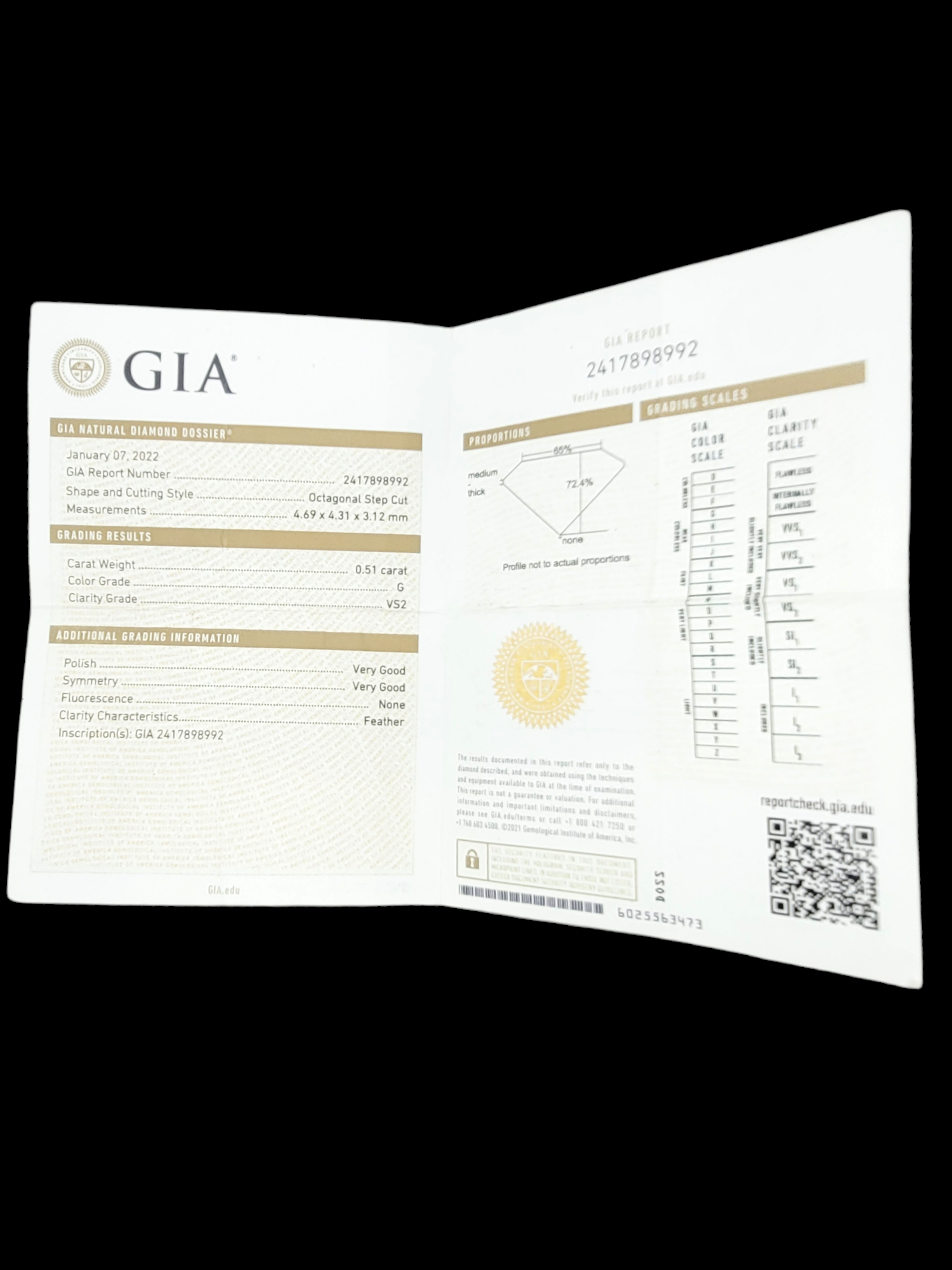 Designer Landscape 0.51ct G.I.A certified G Vs2 Octagonal step cut diamond gypsy set in faceted platinum ring. 5.3mm wide. Currently finger size Q 1/2 (U.S 8.5)
