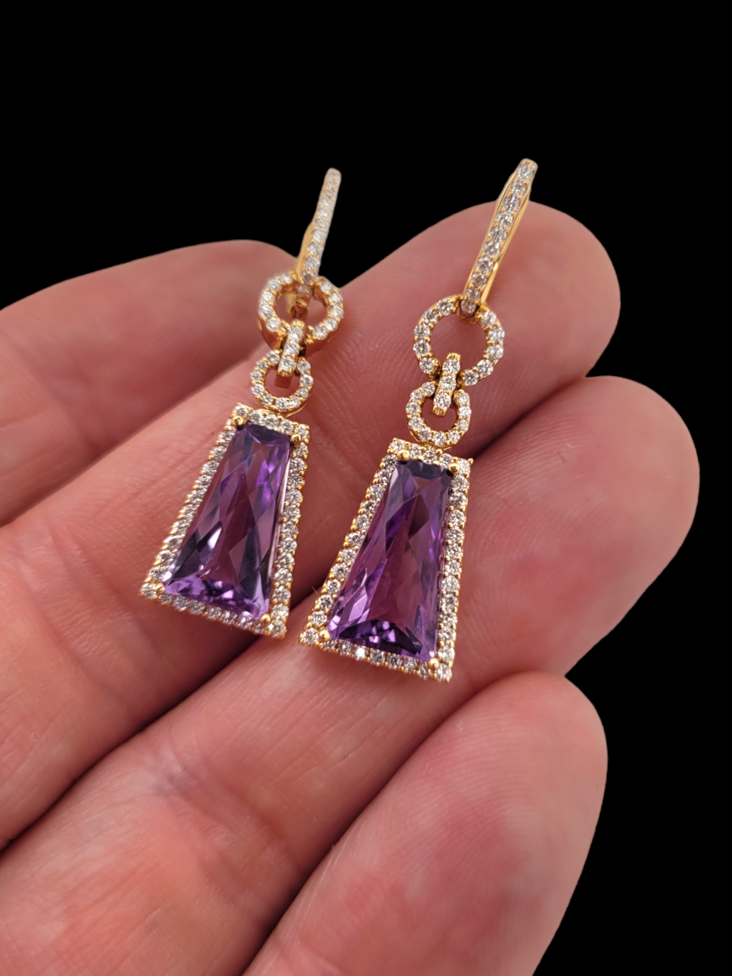 Modern Amethyst and diamond drop earrings SKU: 7318