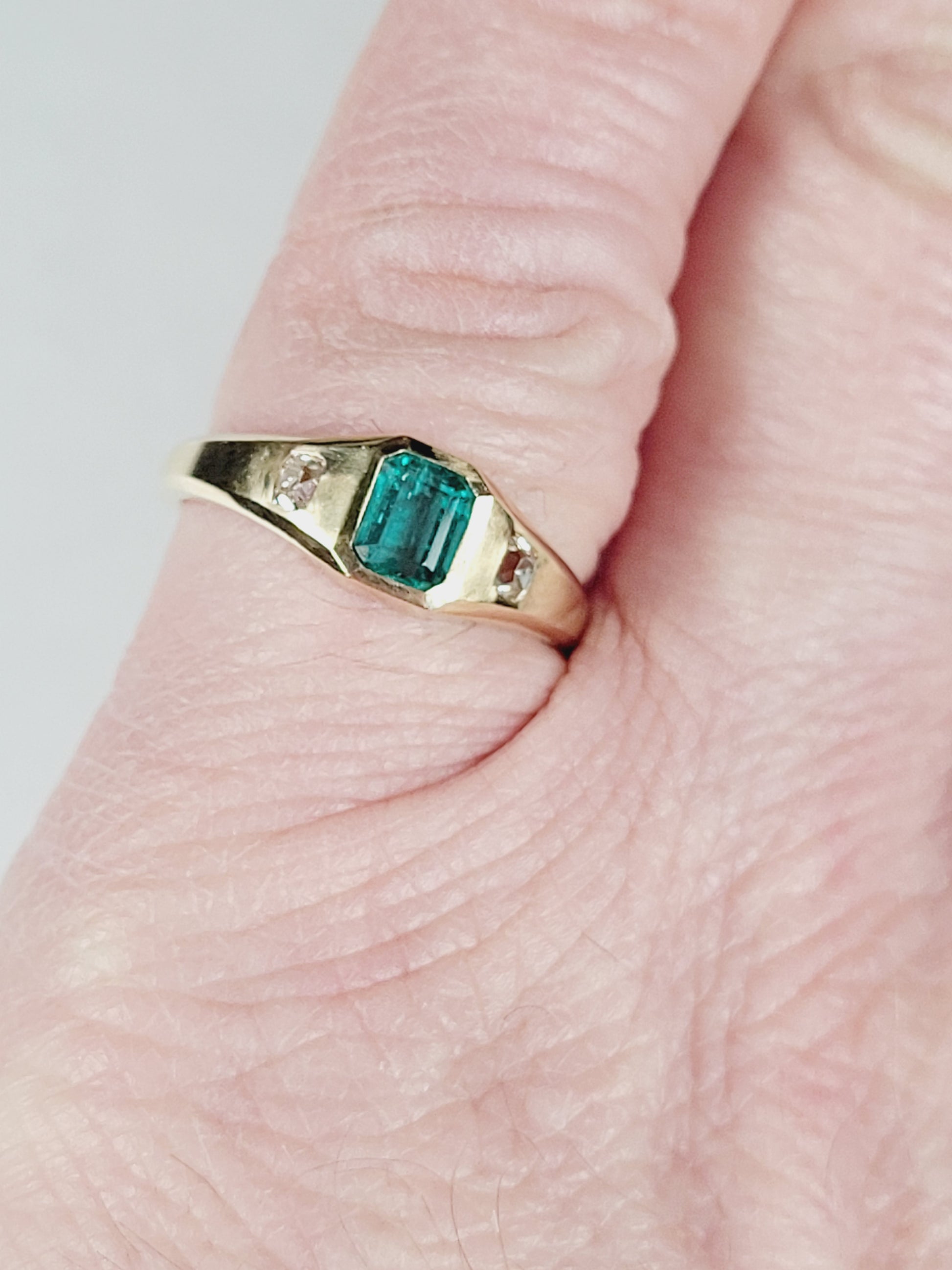 Rare emerald and diamond gypsy set ring SKU: 8607