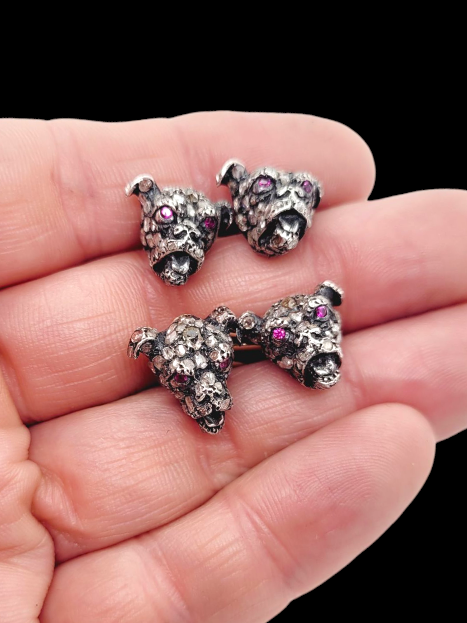 Rose cut diamond Hound dog cufflinks