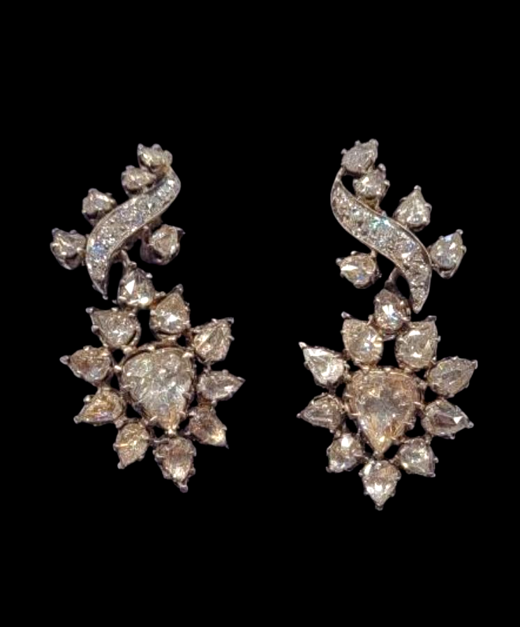 8cts of Rose cut and old mine cut diamond drop earrings. 40mm x 20mm