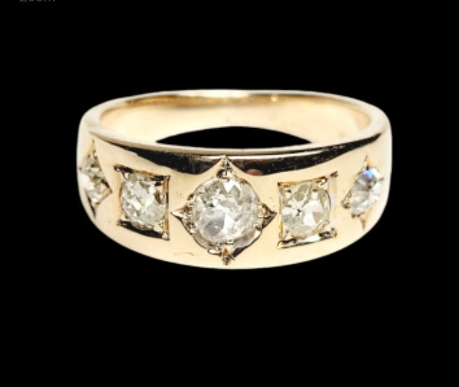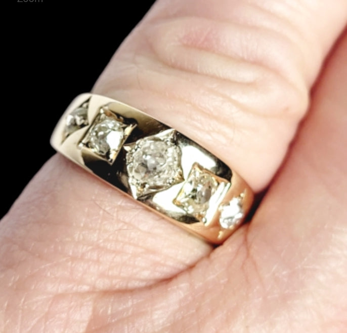 1.50cts of chunky old mine cut diamonds set in 18ct yellow gold. English circa 1880. Currently finger size M 1/2