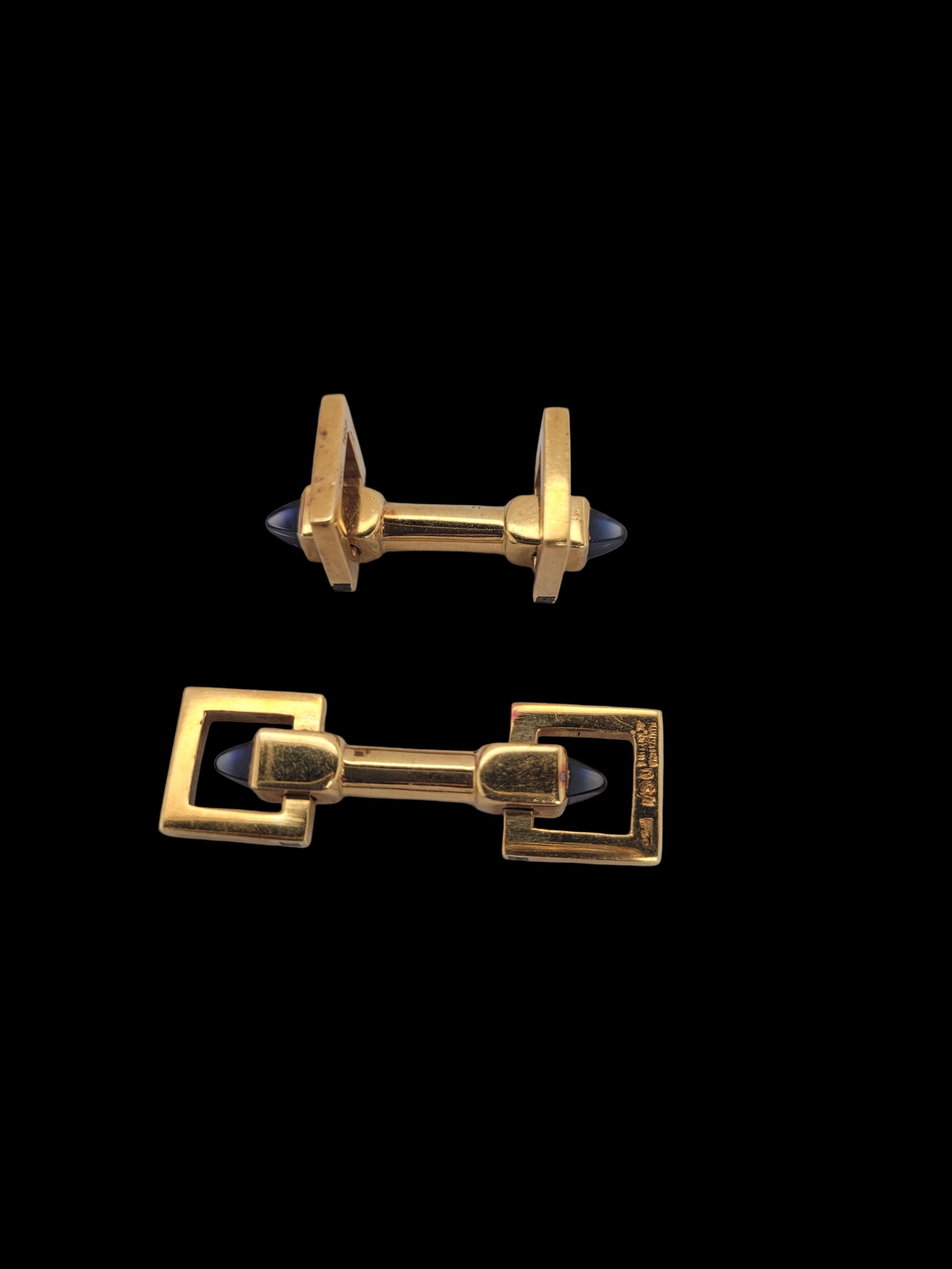 Vintage 18ct gold and sapphire stirrup cufflinks sku 8519