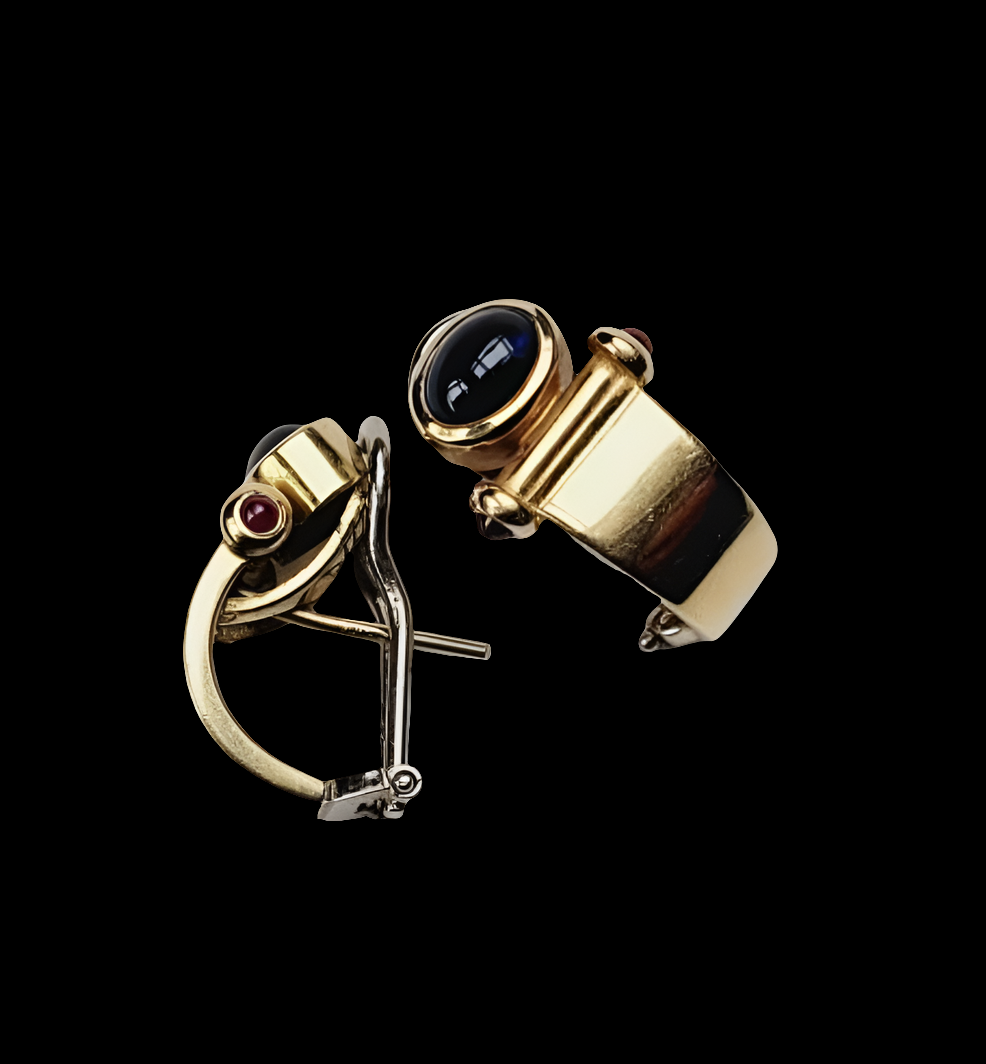 Vintage cabochon sapphire and ruby earrings SKU: 5370