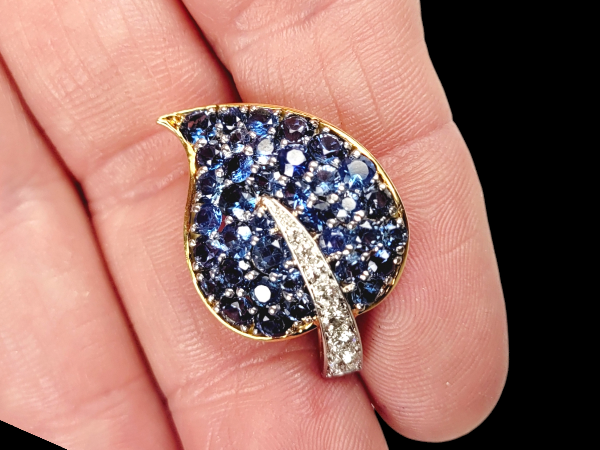 Vintage Montana sapphire and diamond leaf brooch SKU: 7732